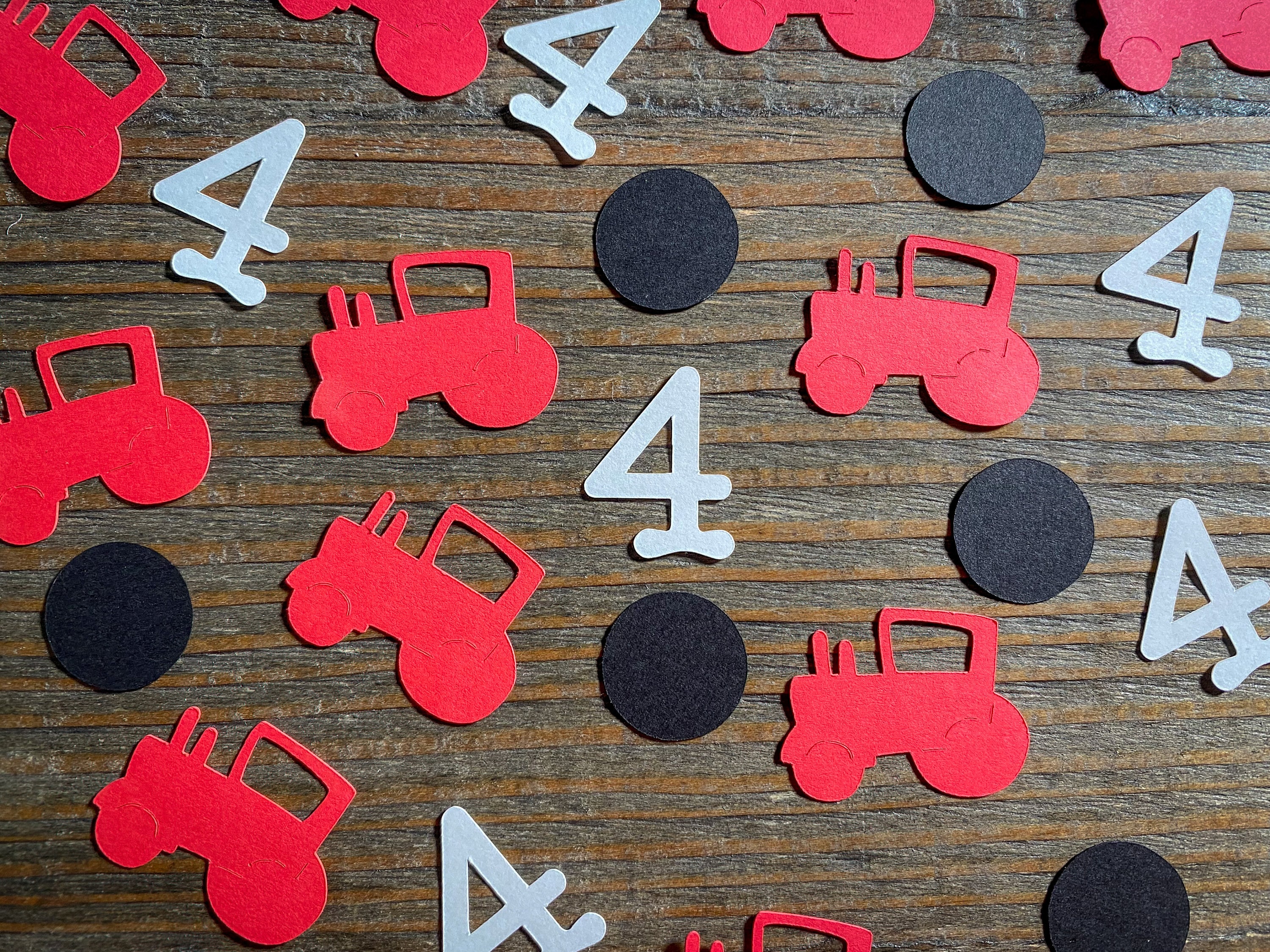 Are you hosting a tractor or farm themed party? Then this red tractor confetti is the perfect addition to your party decor!