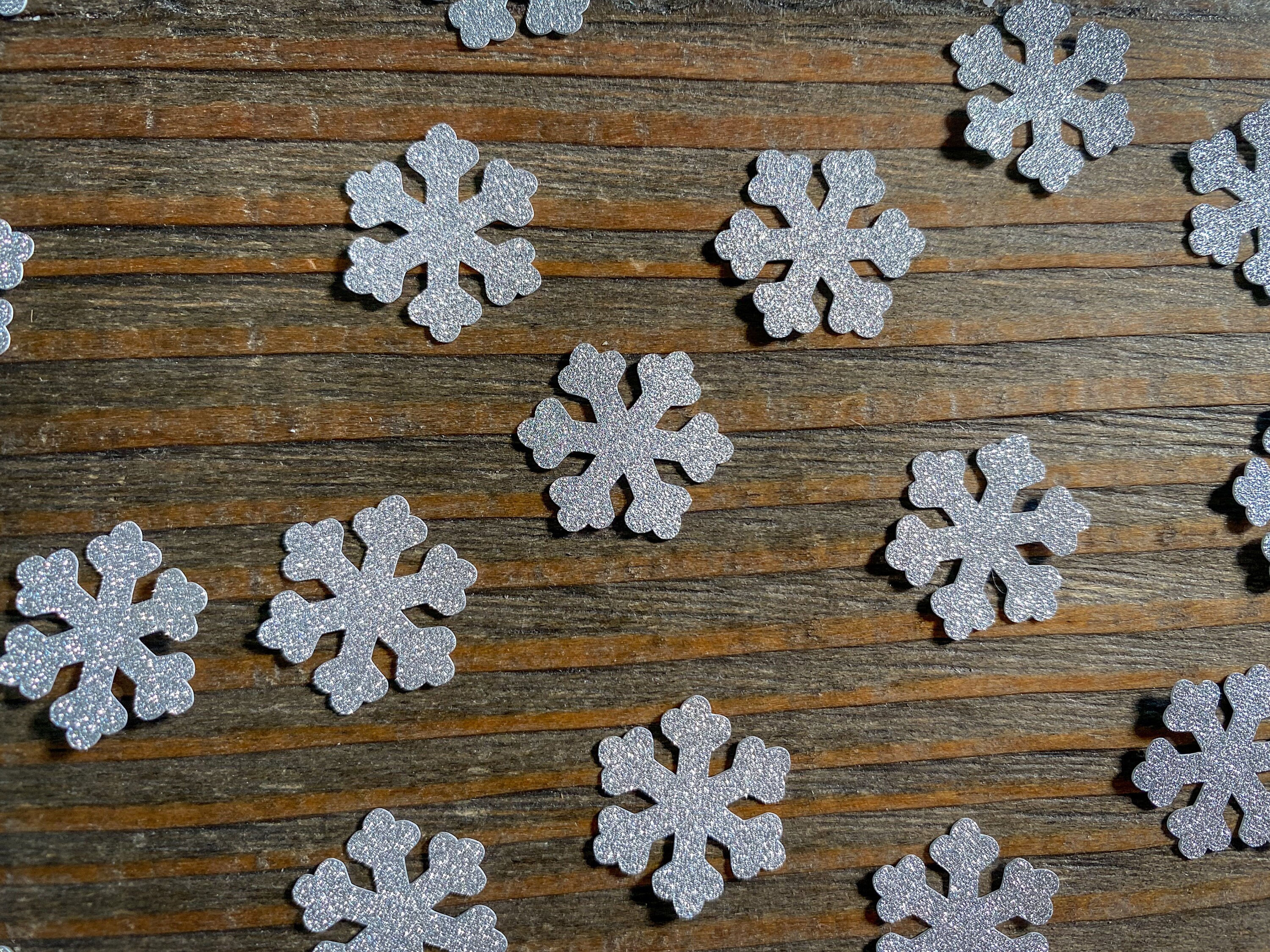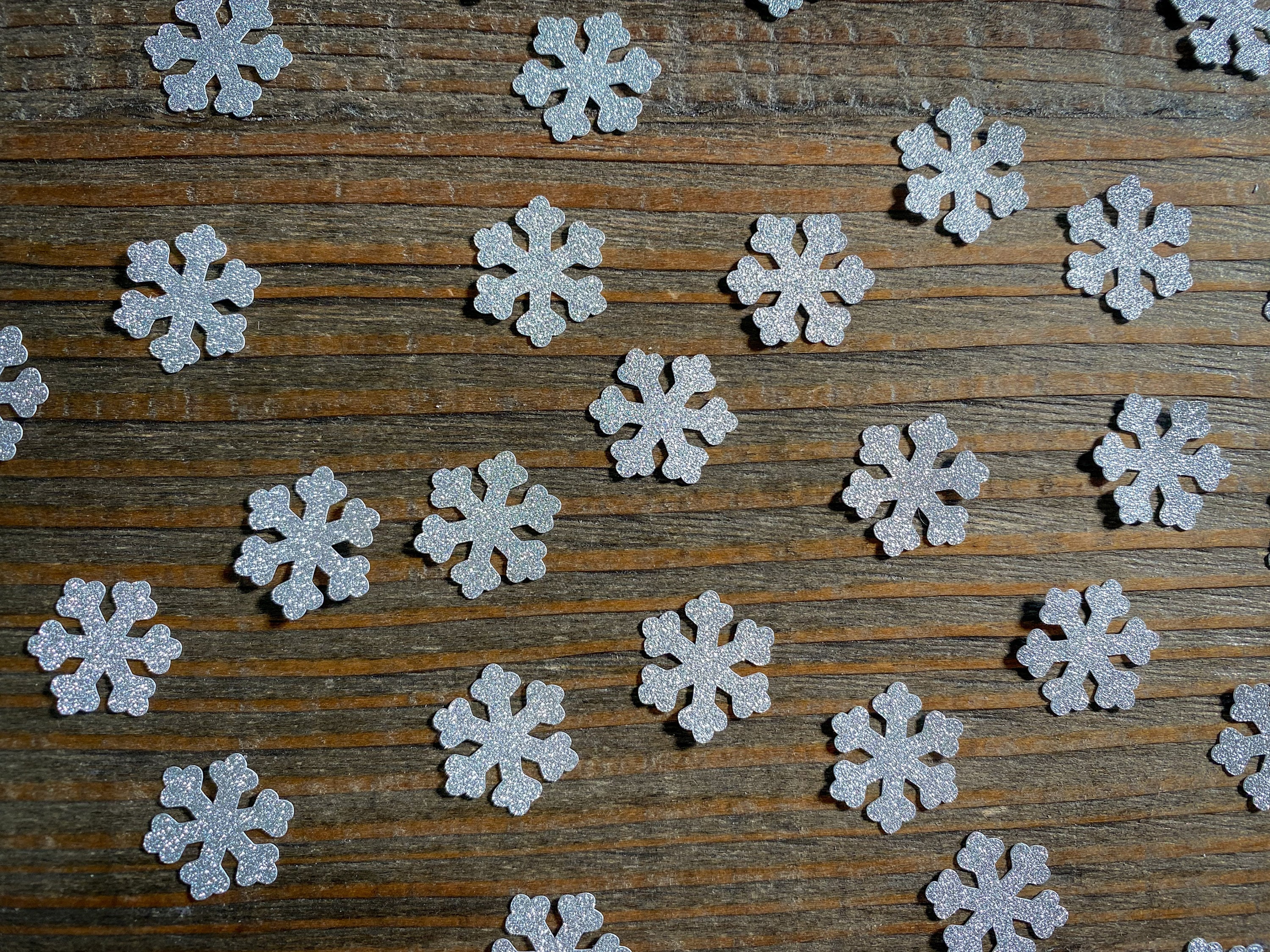 This listing is for 150 pieces of confetti! If includes 150 pieces of white snow. The snowflakes are made of premium cardstock and measure .75 inches wide. The glitter confetti is white on the reverse side.