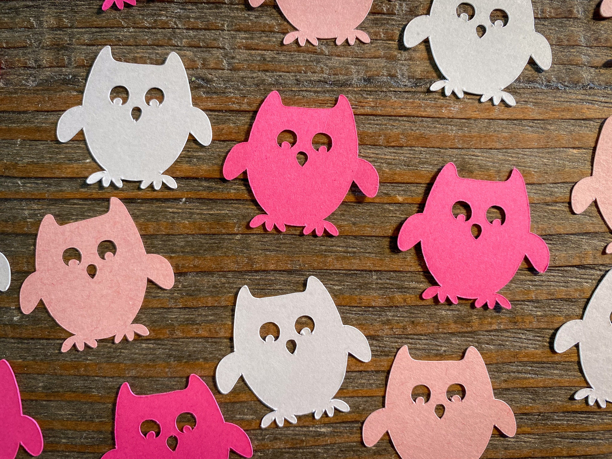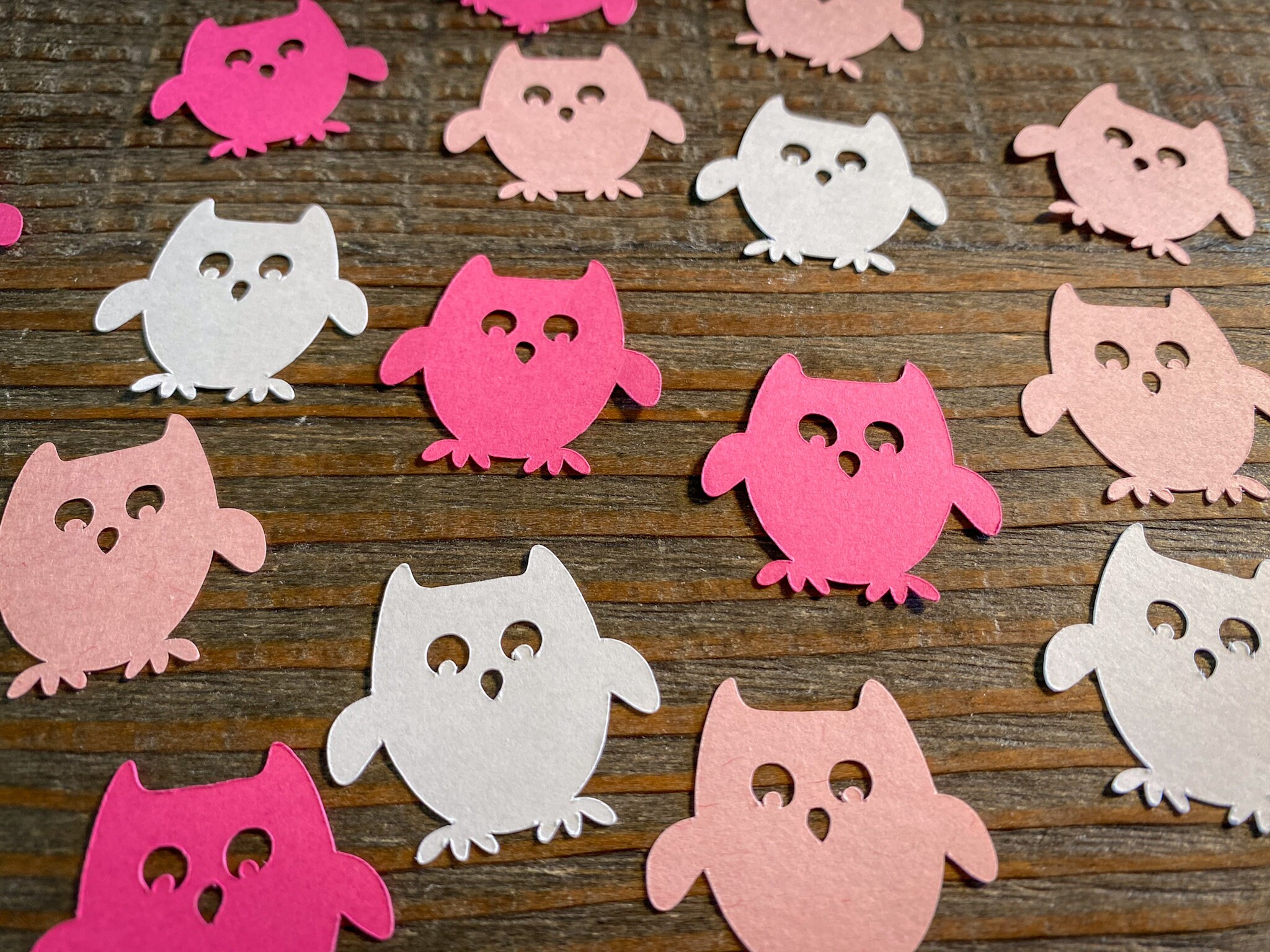 This listing is for 100 pieces of owl confetti! Each piece is approximately 1 inch. You will receive a mix of light pink, white, and bright pink owls.