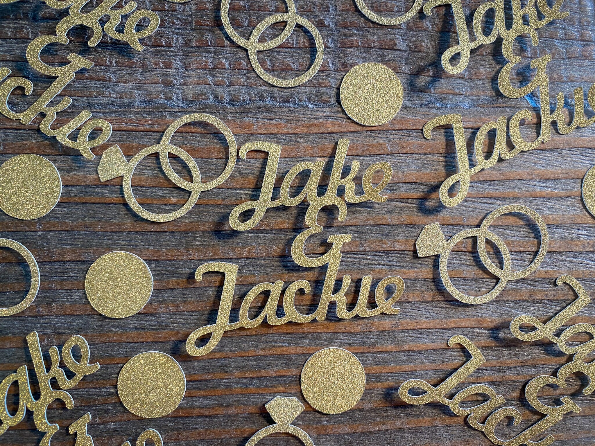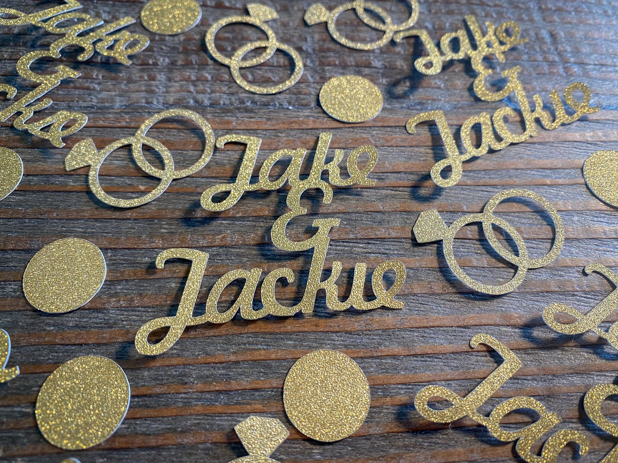 Are you throwing an engagement party, bachelorette party, wedding shower or wedding? Then this confetti is perfect for you! What better way to celebrate the happy couple then with personalized confetti!