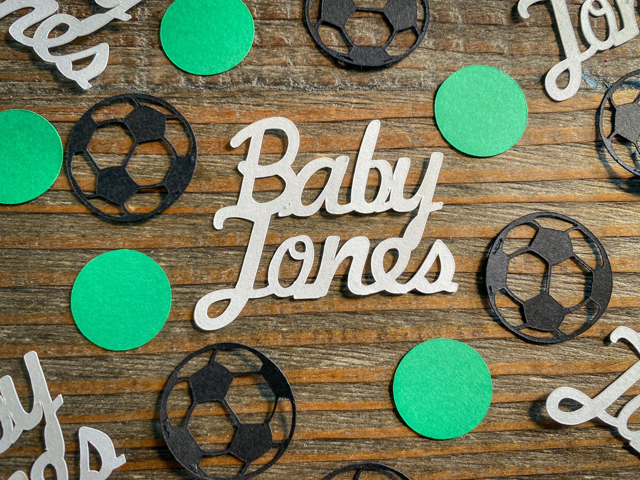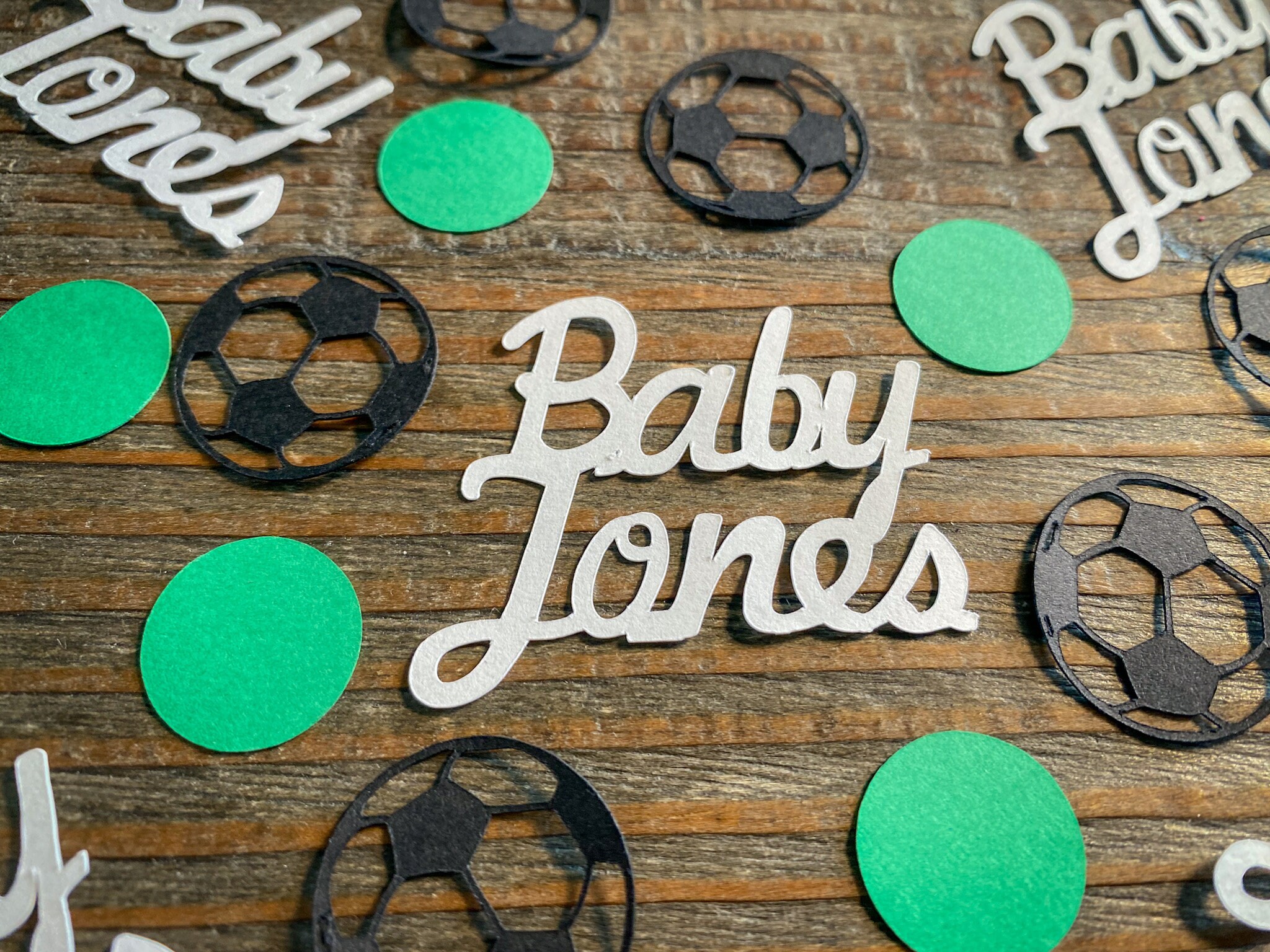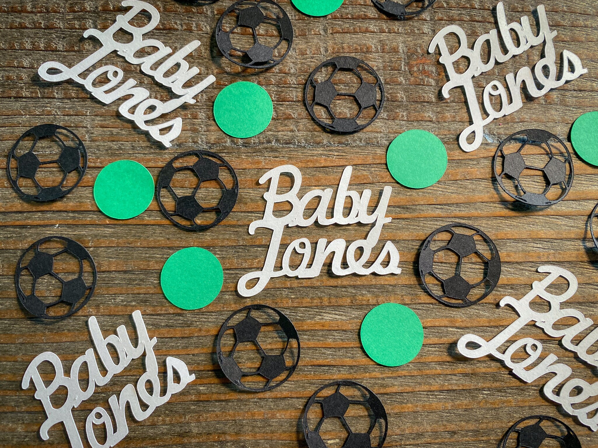 If you are hosting a soccer themed baby shower then this confetti is the perfect addition to your party decor!