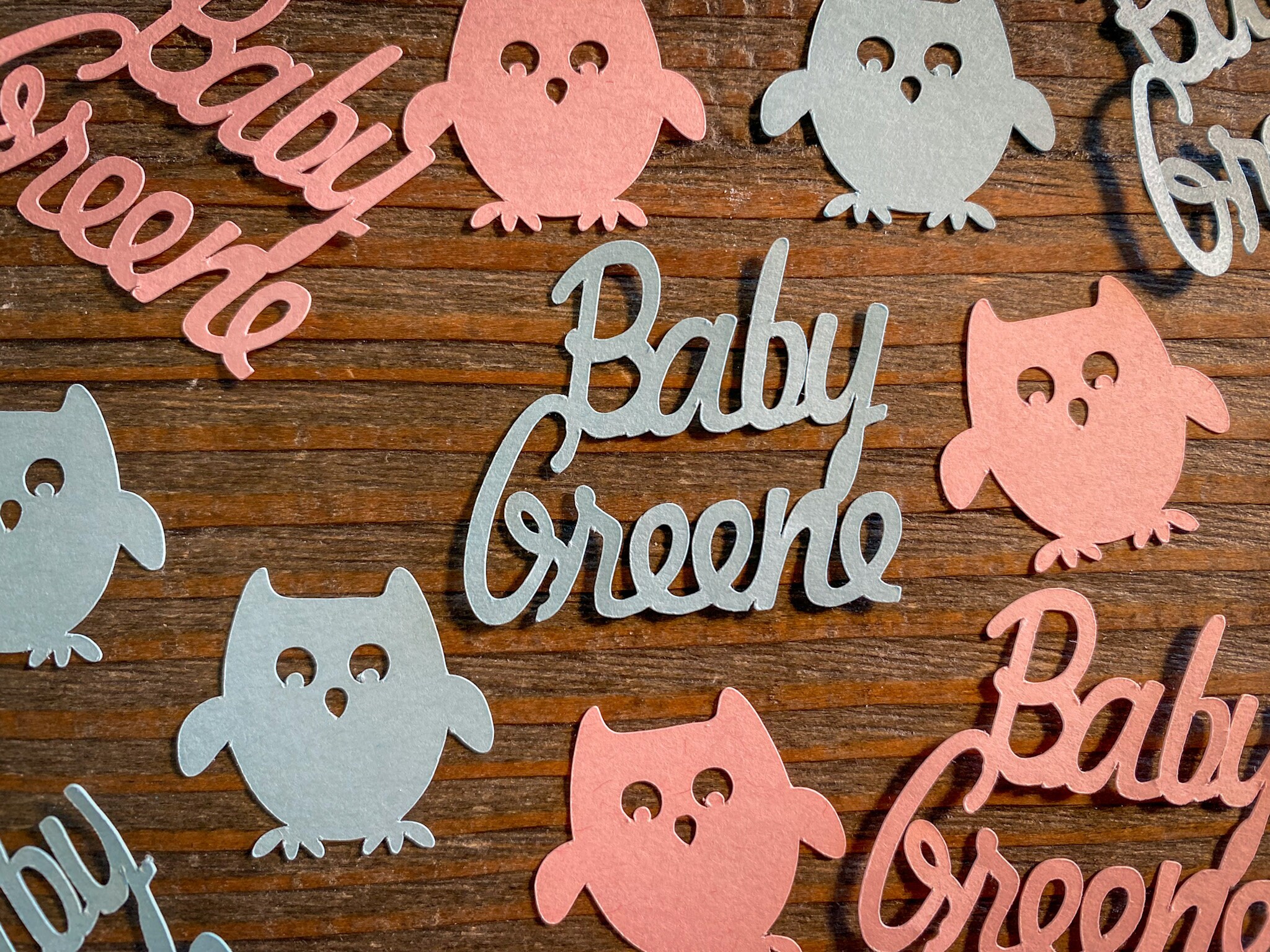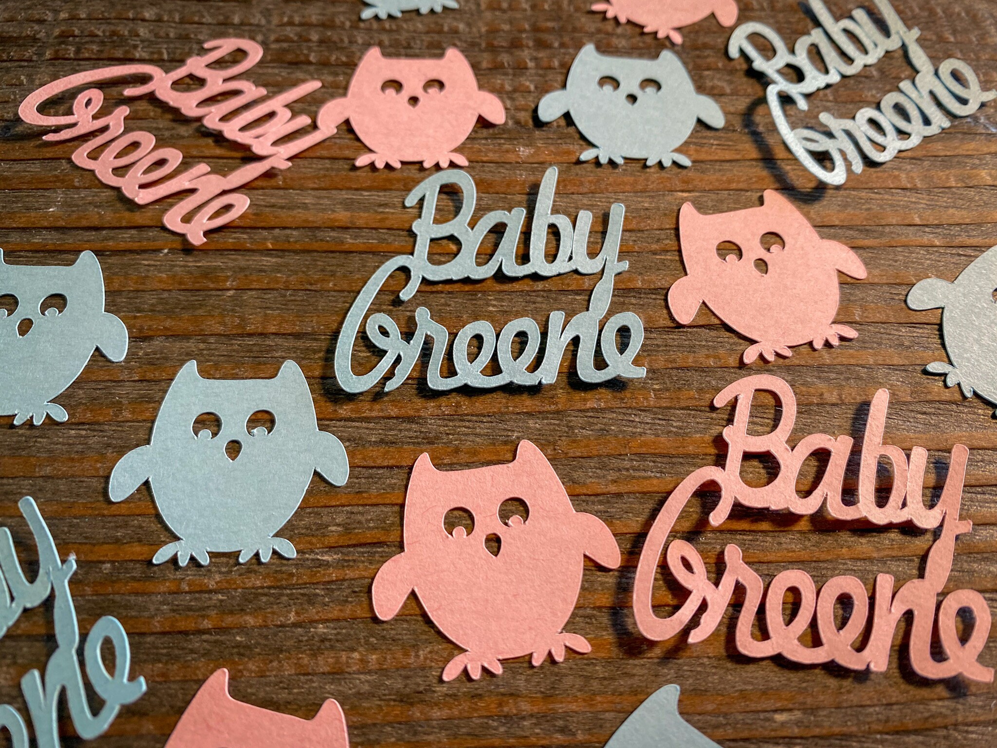 A beautiful bundle of joy will soon be arriving! Be sure to add this pink and blue owl confetti to your baby shower or gender reveal decor! The personalized confetti is the perfect touch to any party!