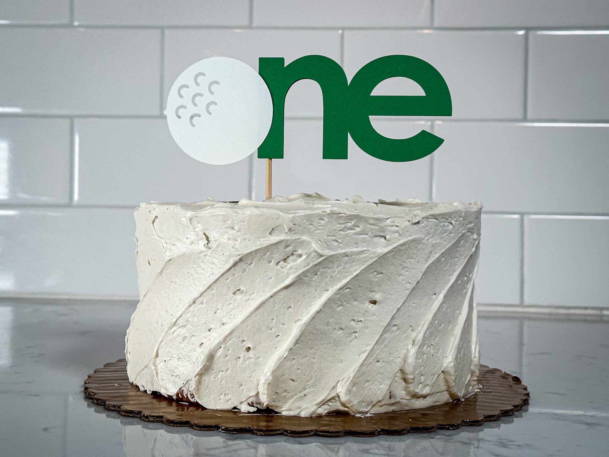 Are you hosting a Hole in One first birthday party? This cake topper is the perfect addition to your dessert decor!