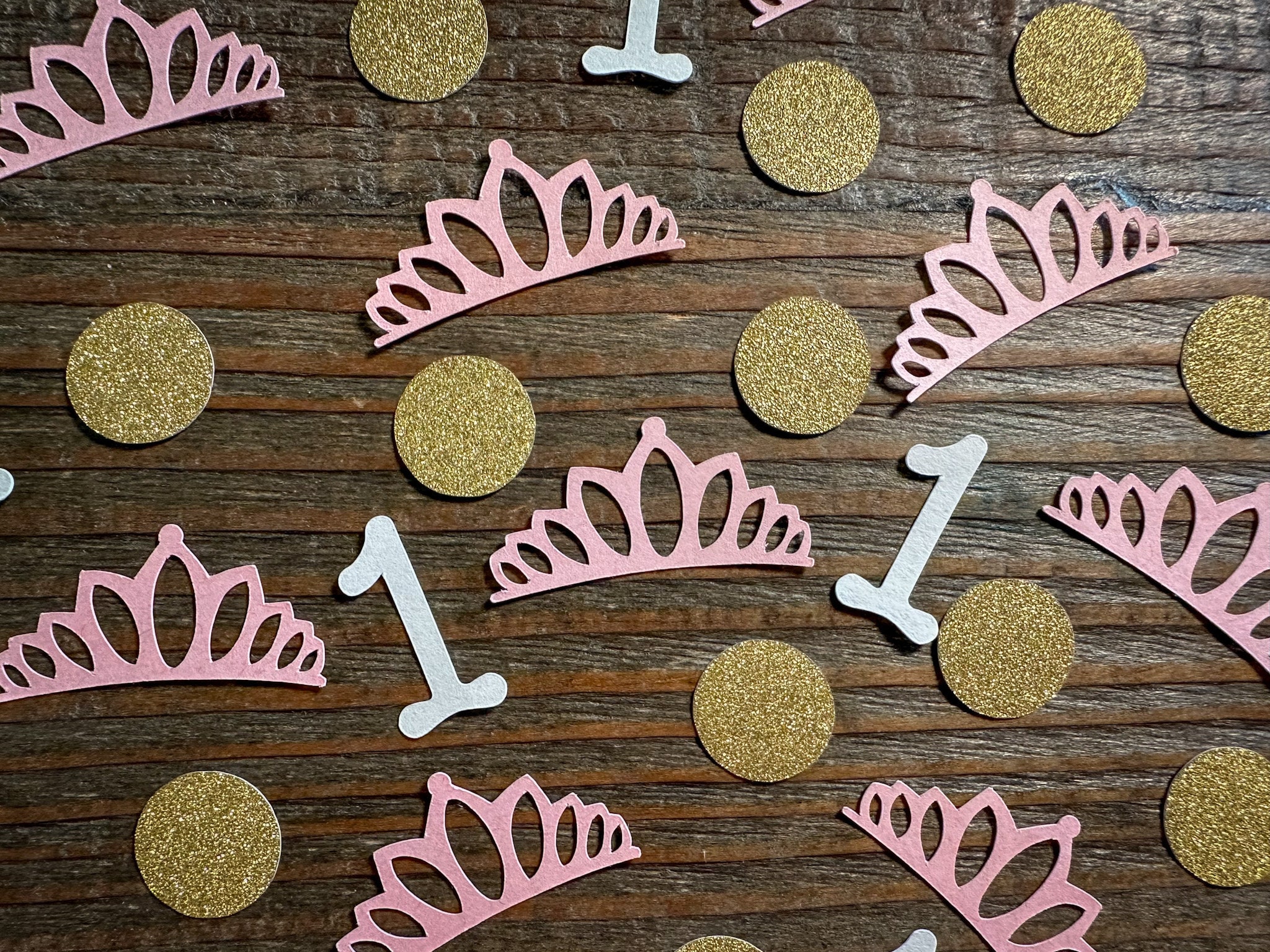 Make your little princess’s party sparkle with this personalized age princess confetti set! Designed in a charming pink, white, and gold color palette, it’s the perfect finishing touch for birthday tables, party favors, or invitations.