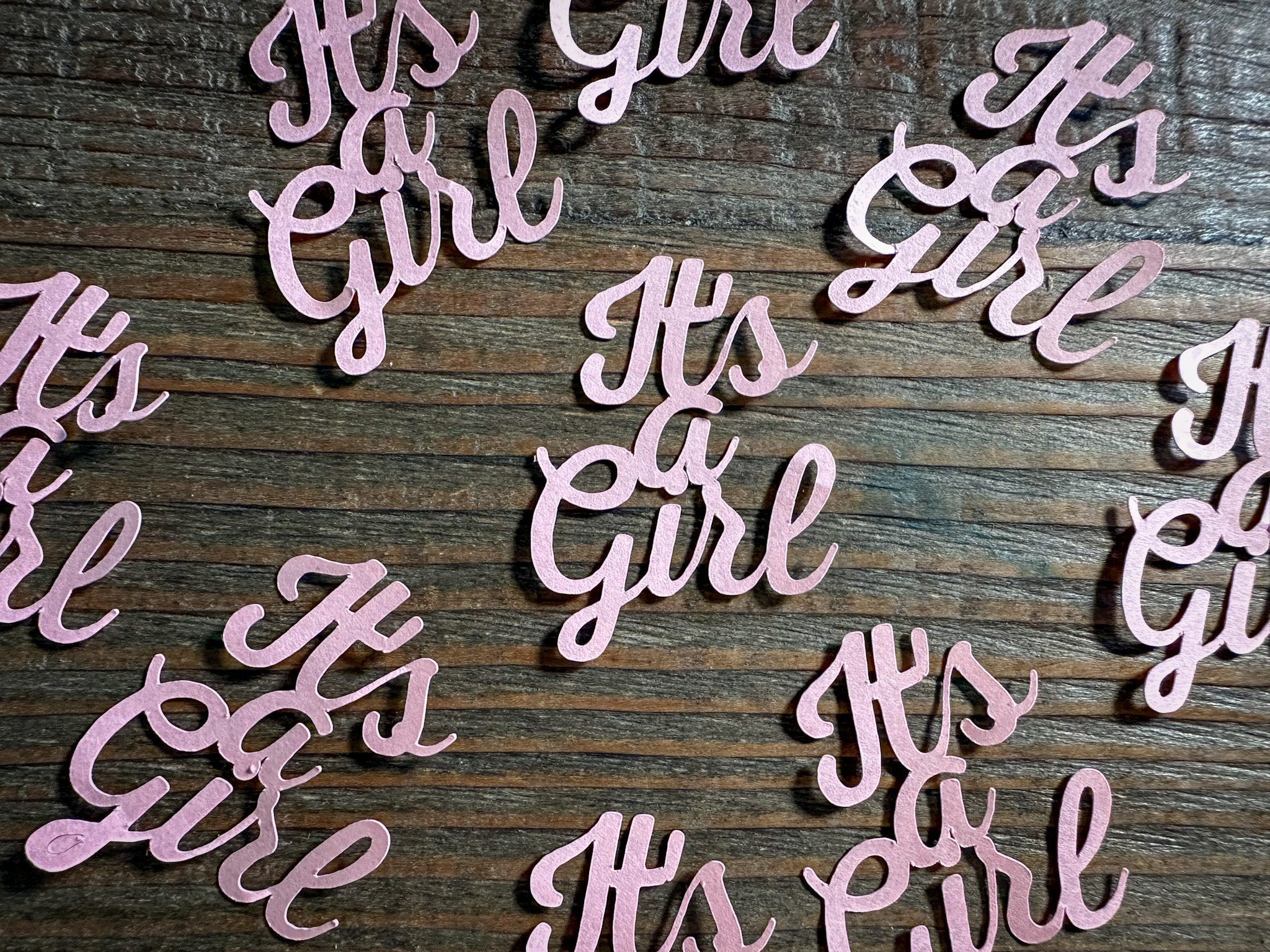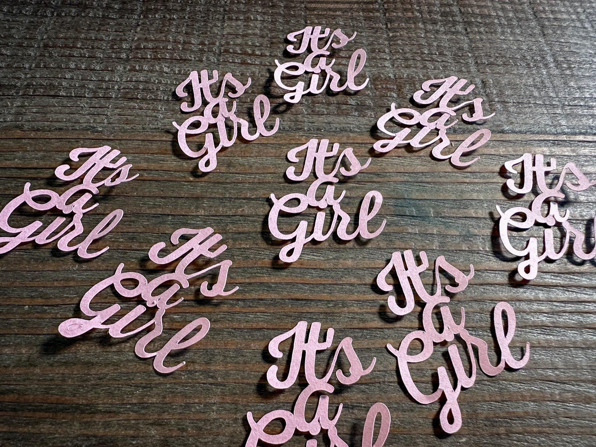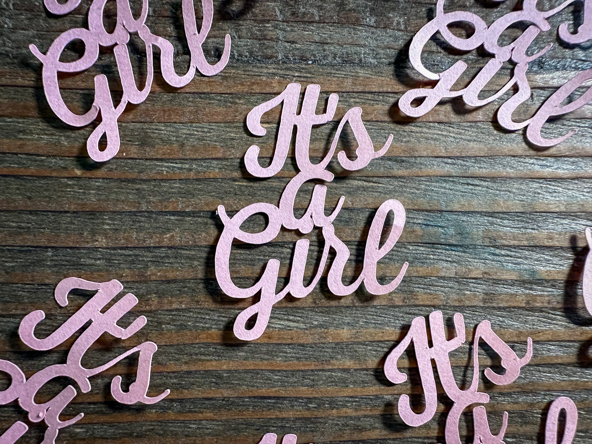 This listing is for 30 pieces of pink its a girl confetti! The confetti is made from premium pink cardstock and measures approximately 2 inches in height and 1.5 inches in width.