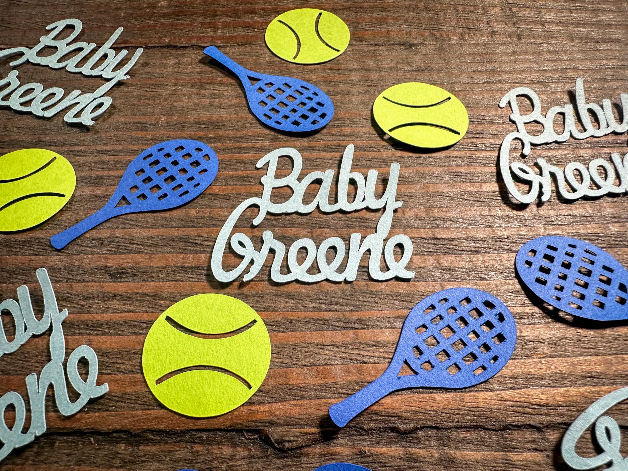 Are you hosting a tennis themed baby shower? This light blue personalized confetti is the perfect addition to your tennis themed party decor!