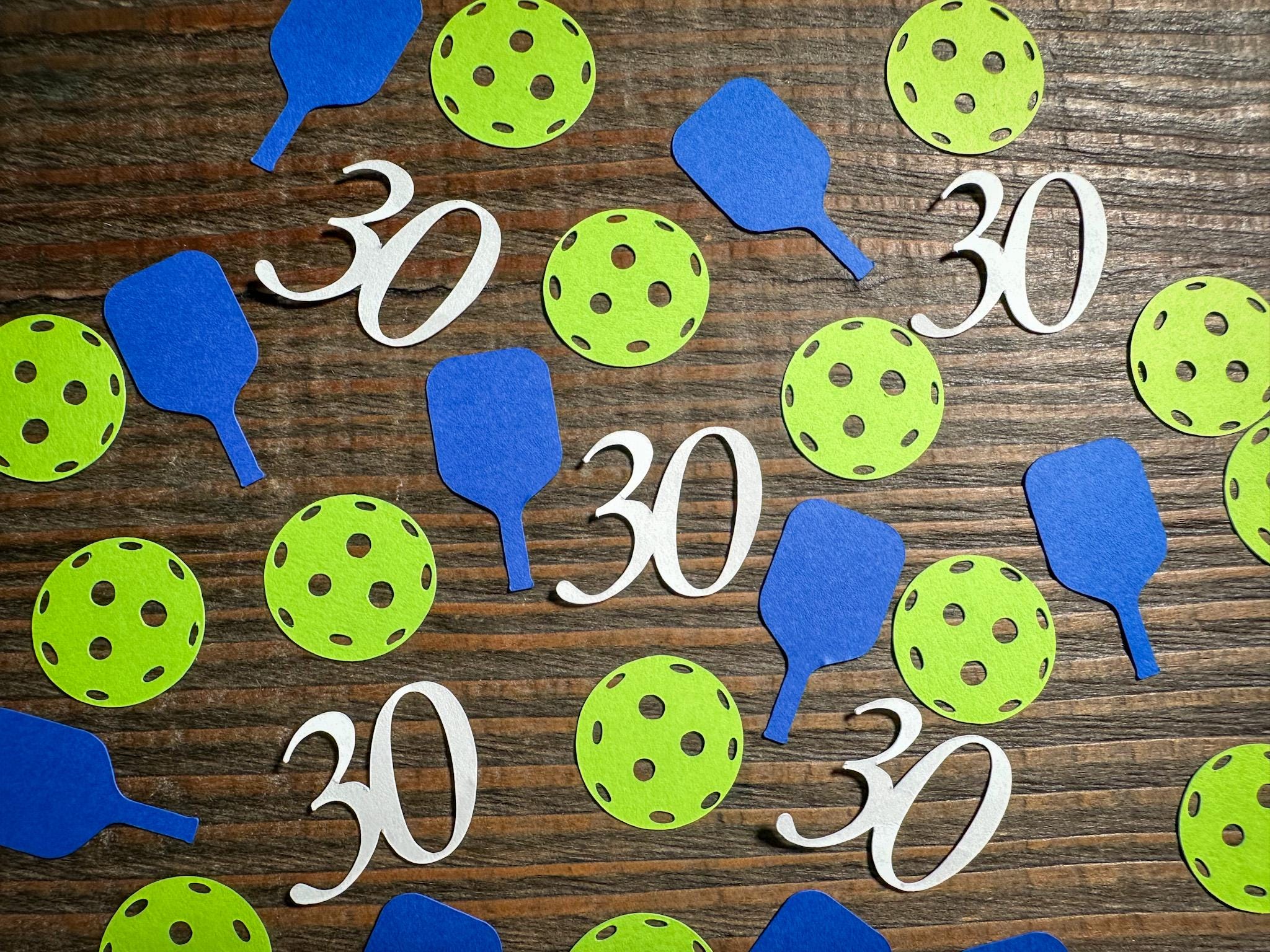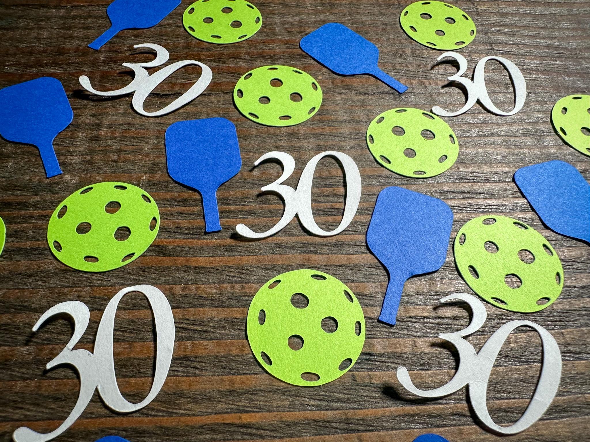 This personalized Age confetti is the perfect addition to your pickleball themed party!