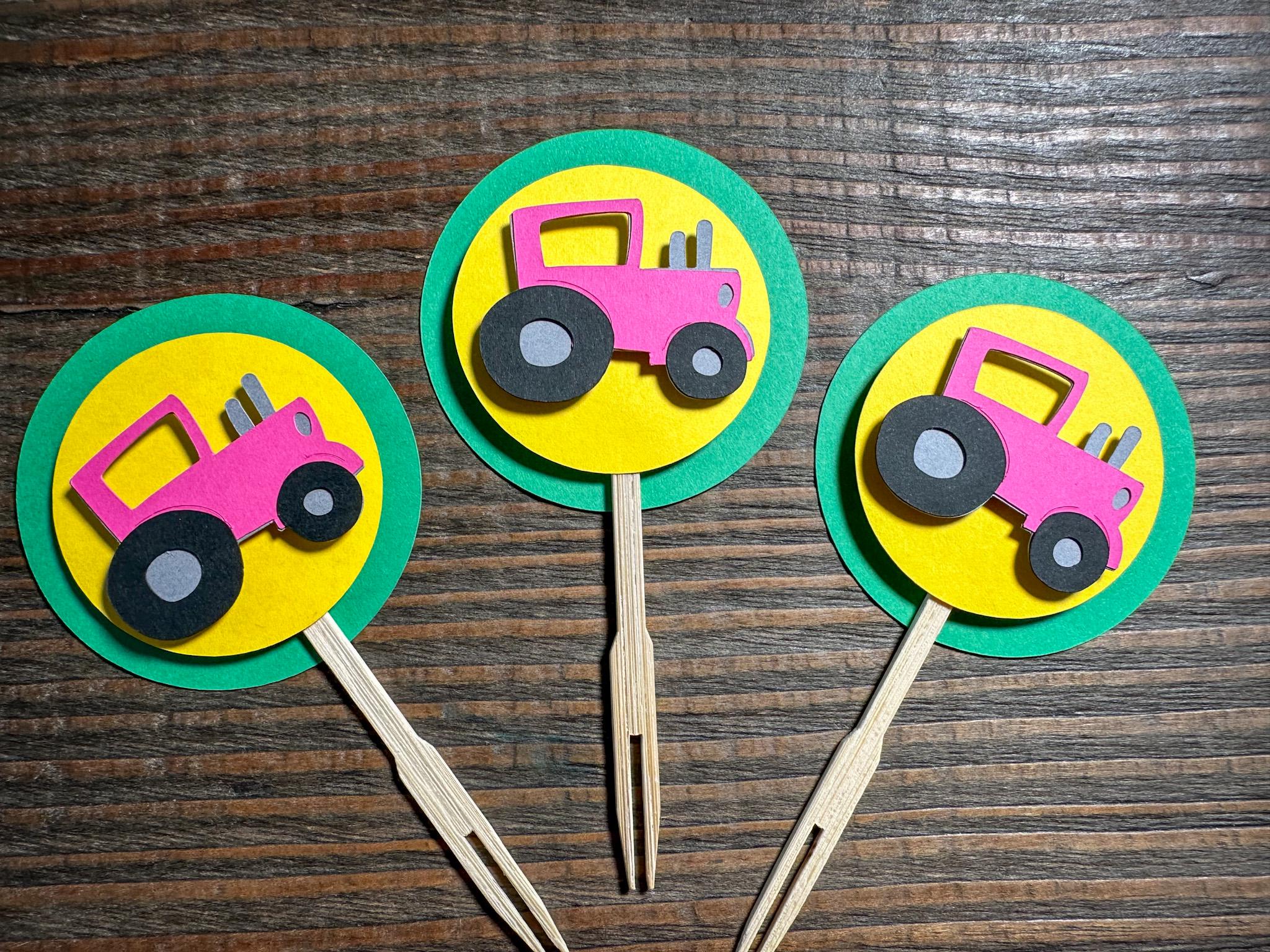 Pink Tractor Cupcake Toppers