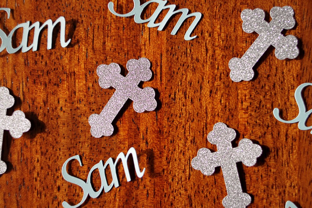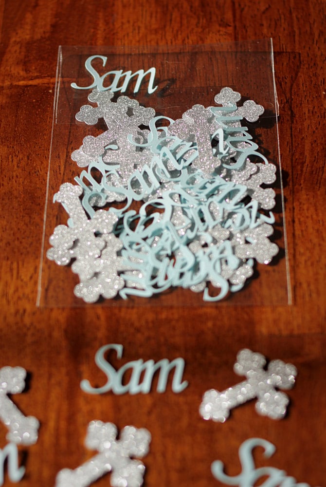 Are you celebrating your little boys Baptism, First Communion, or Confirmation? This personalized confetti is perfect for your table!