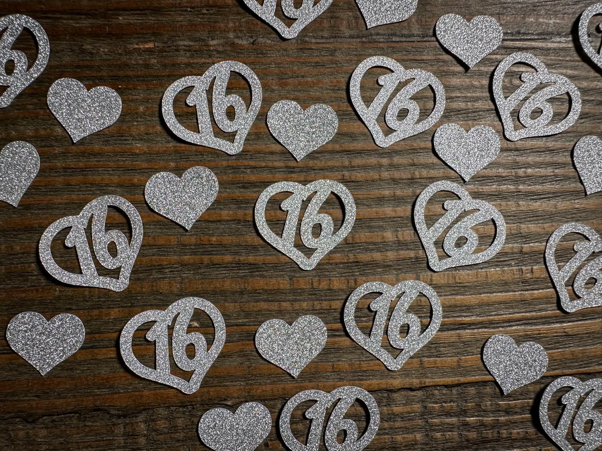 Are you hosting a sweet 16 party? Add this silver glitter heart confetti for a sparkle for your tables!