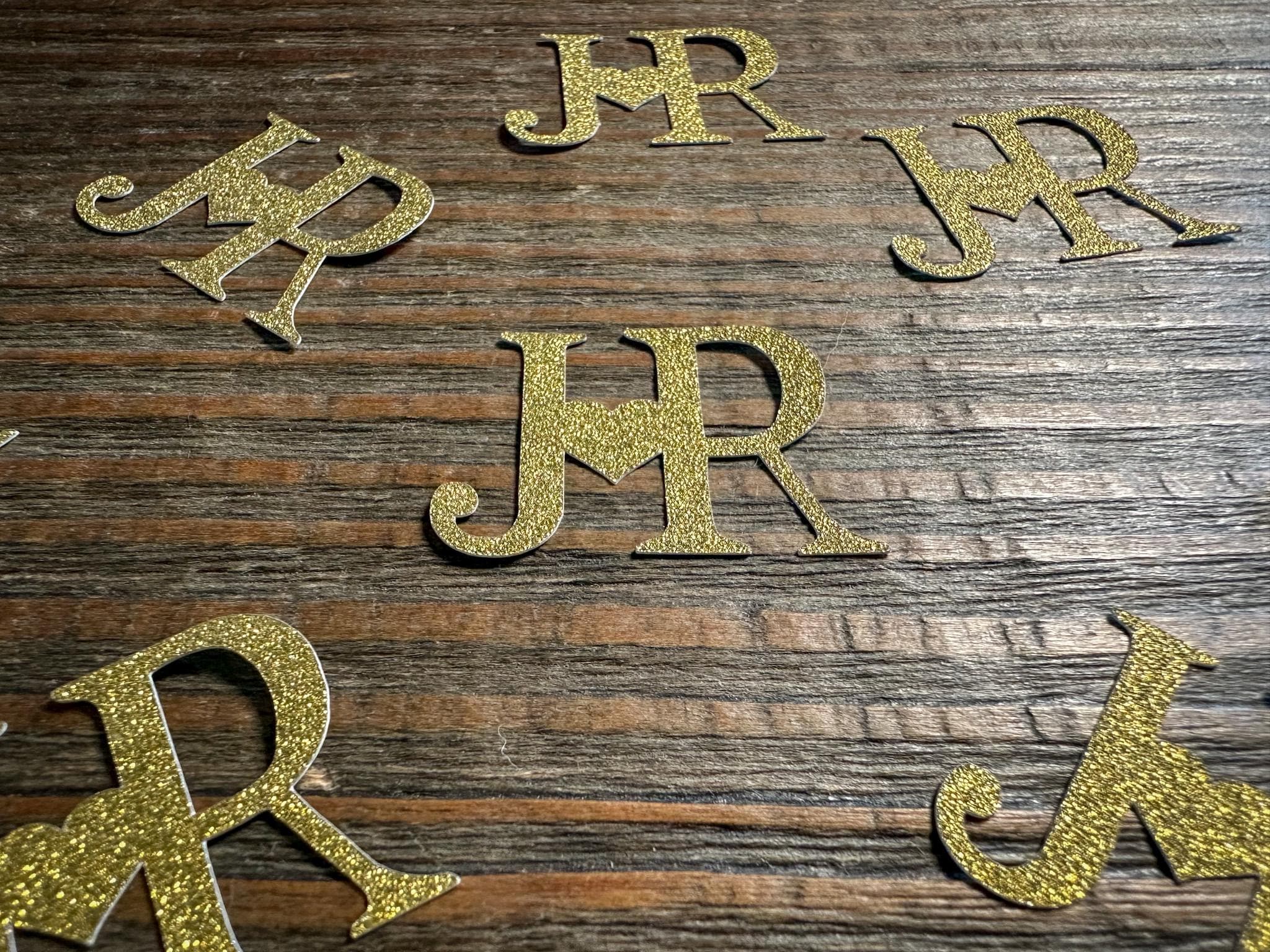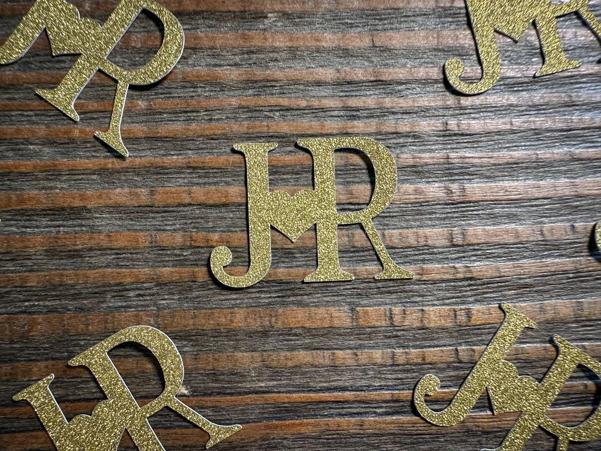50 custom confetti pieces with couple’s initials connected by a heart (e.g., J♥M)