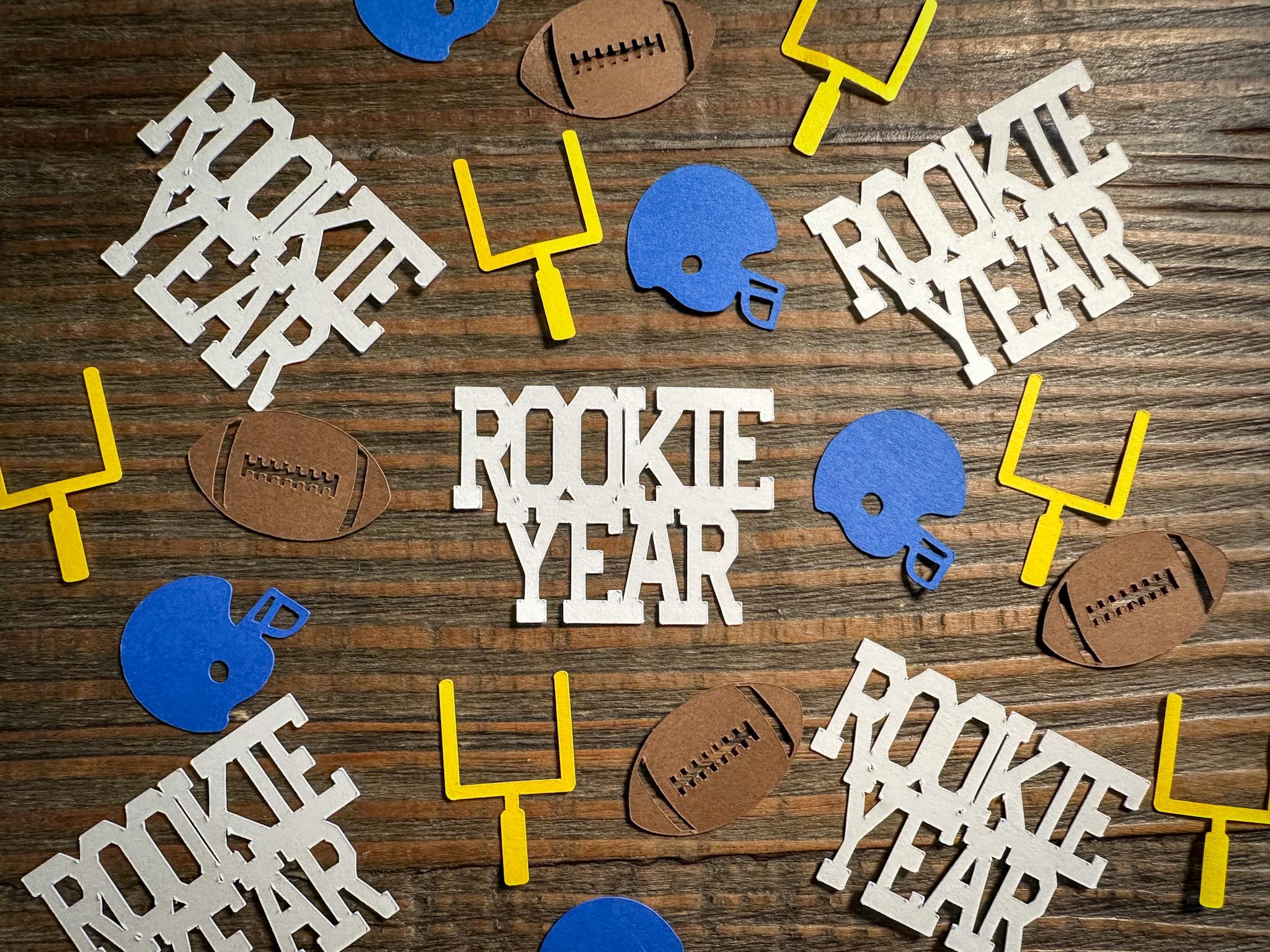 Colors for the helmets and “Rookie Year” text can be customized to match your party theme or team colors. Just leave your preferences in the personalization section!
