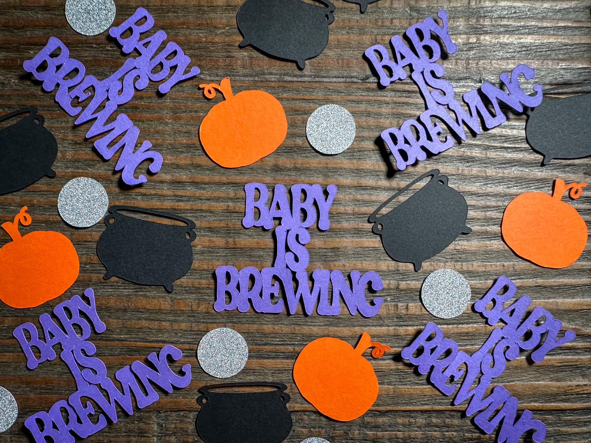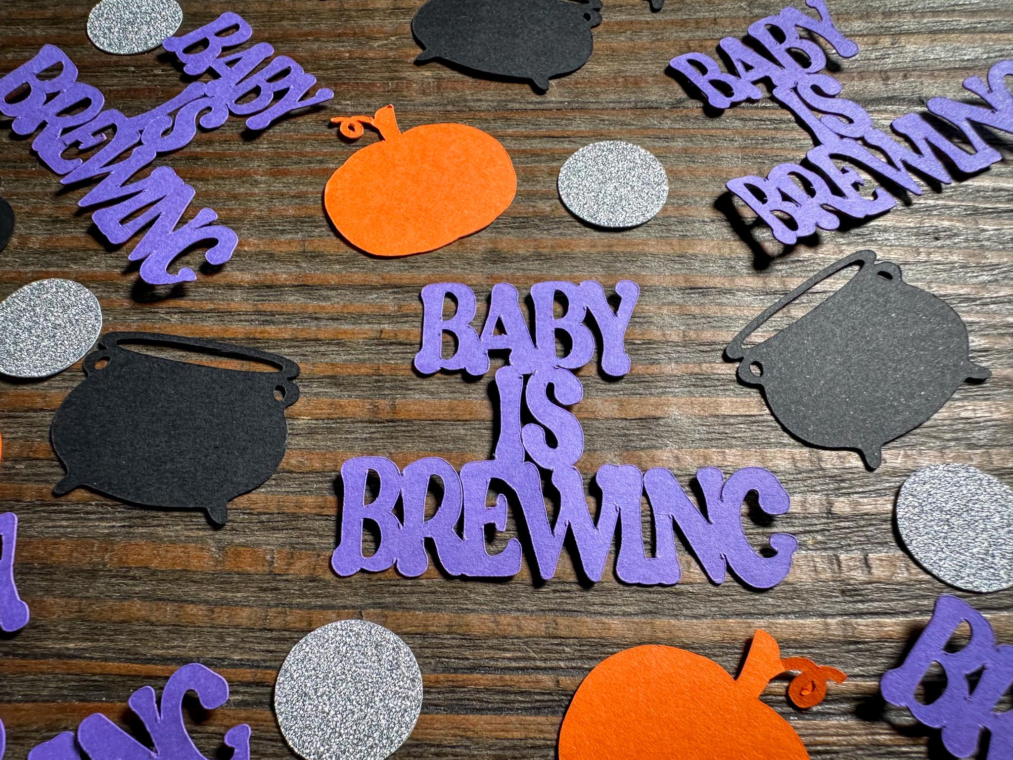 🧡 Baby is Brewing Confetti – Halloween Baby Shower Decor | 100 Pieces 🖤