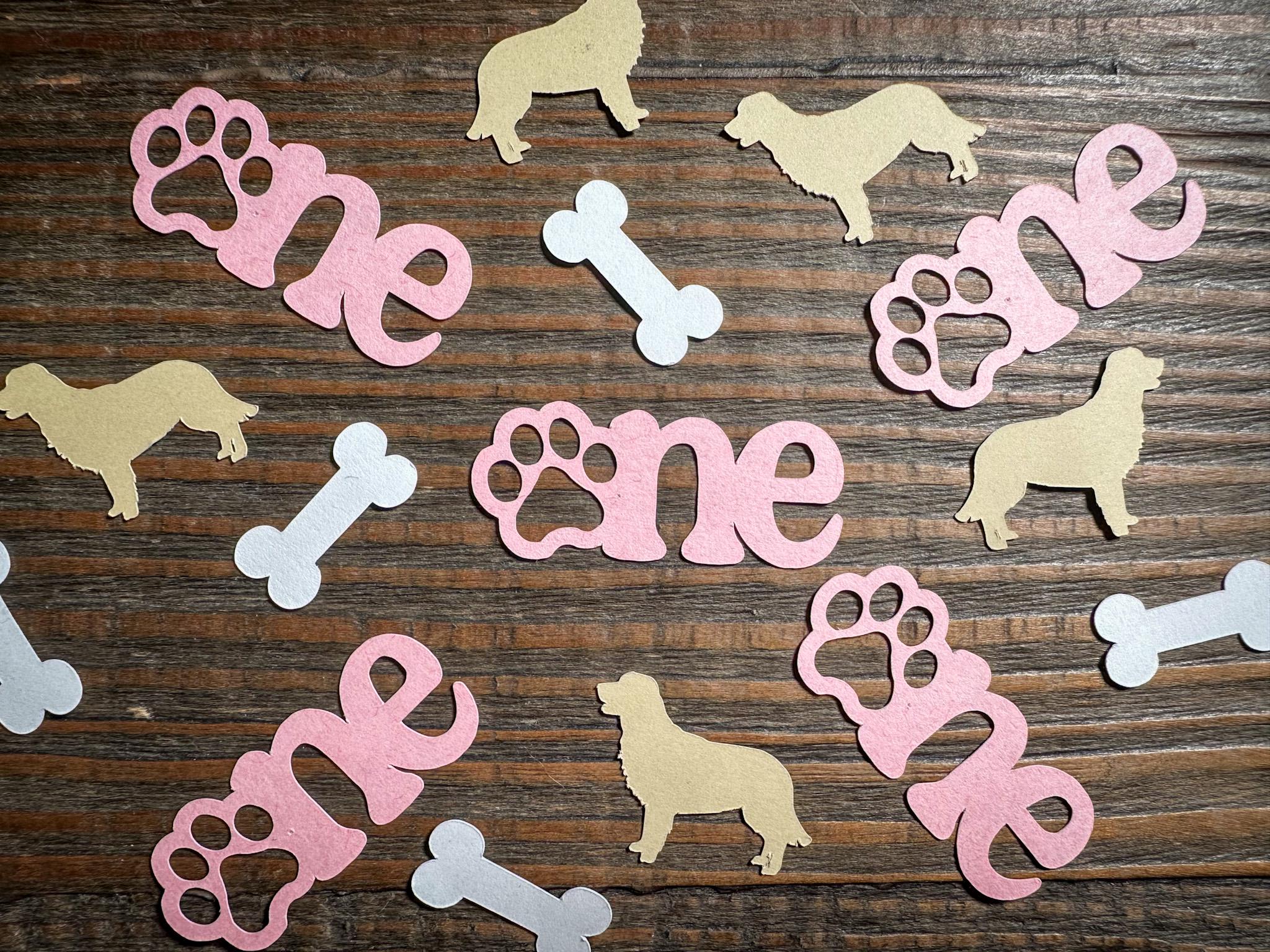 Dog First Birthday Confetti โ Puppy Pawty "ONE" with Paw Print | Kids or Dog 1st Birthday Decor | 100 Piecesโจ Perfect for: