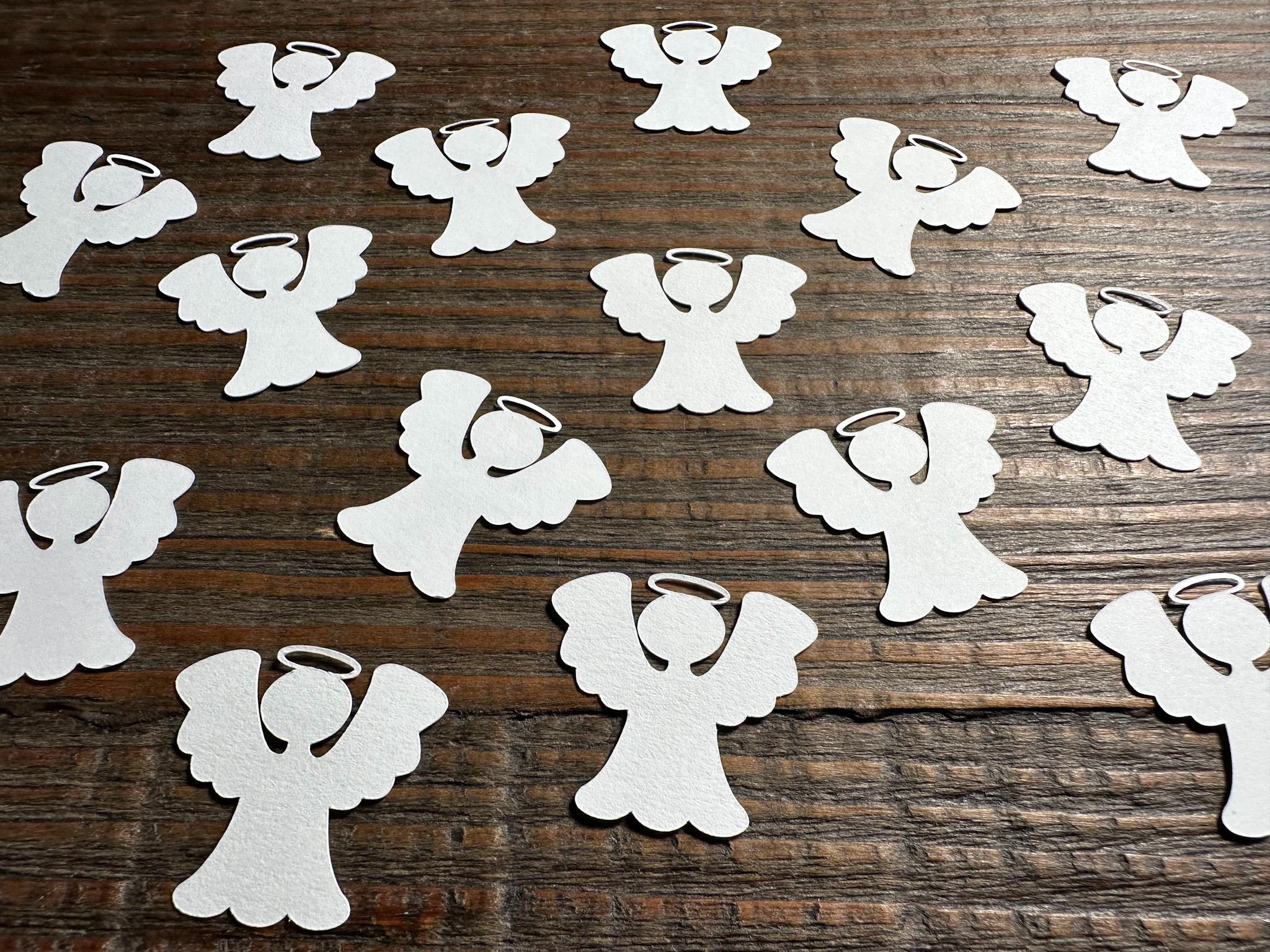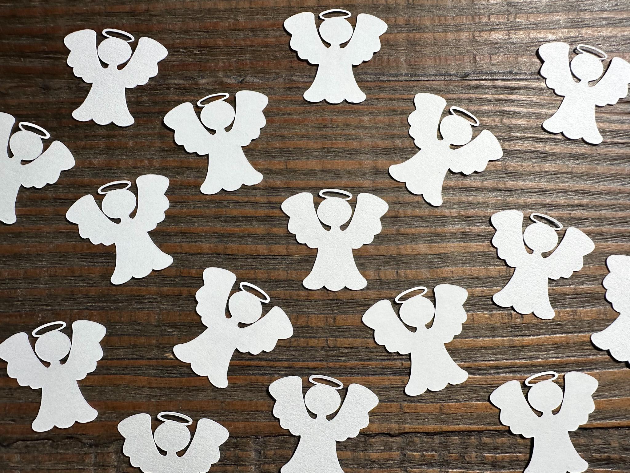Each set includes 100 angel-shaped confetti pieces, lovingly crafted from high-quality 65 lb white cardstock for a clean, elegant look that complements any décor.
