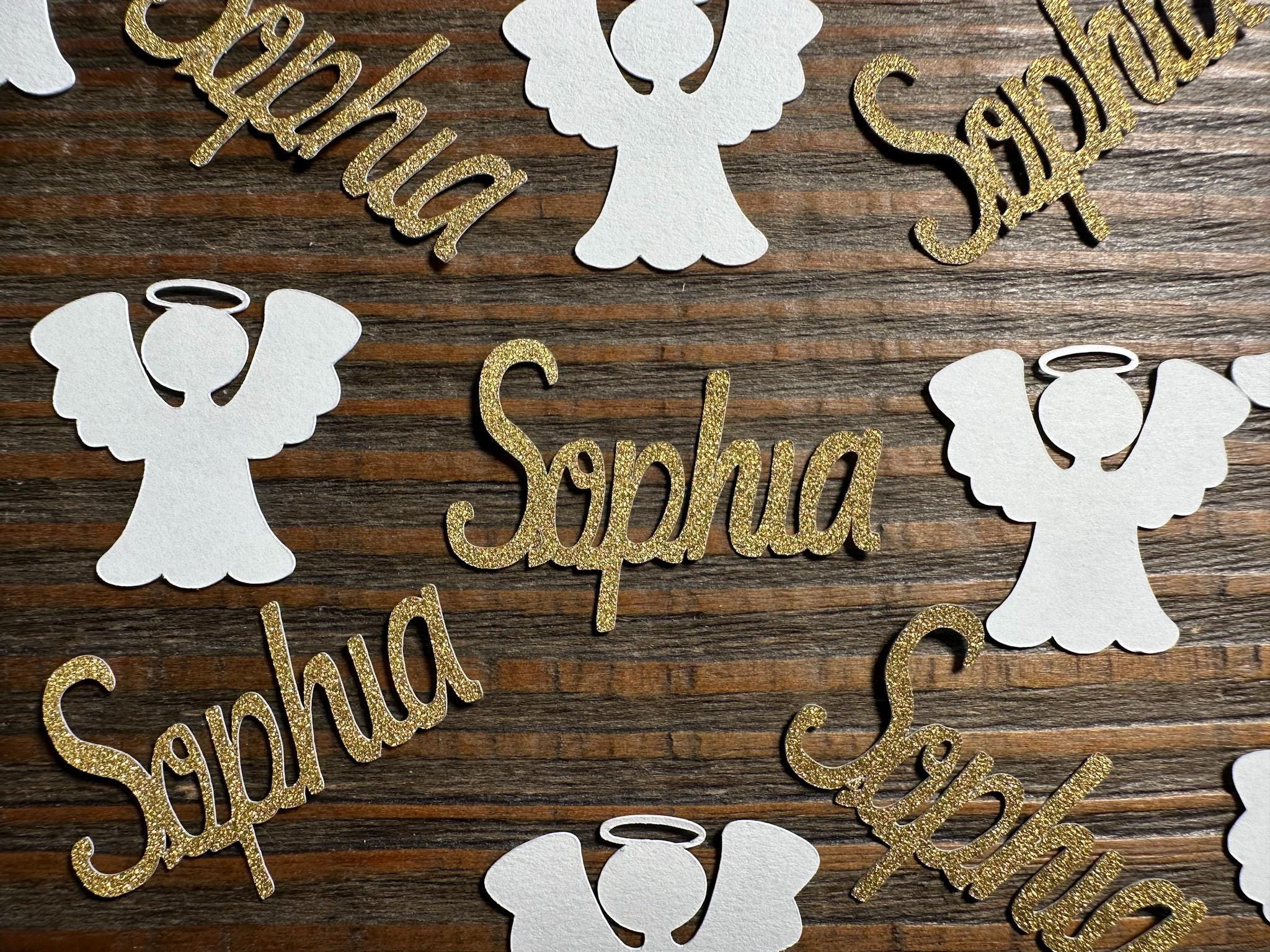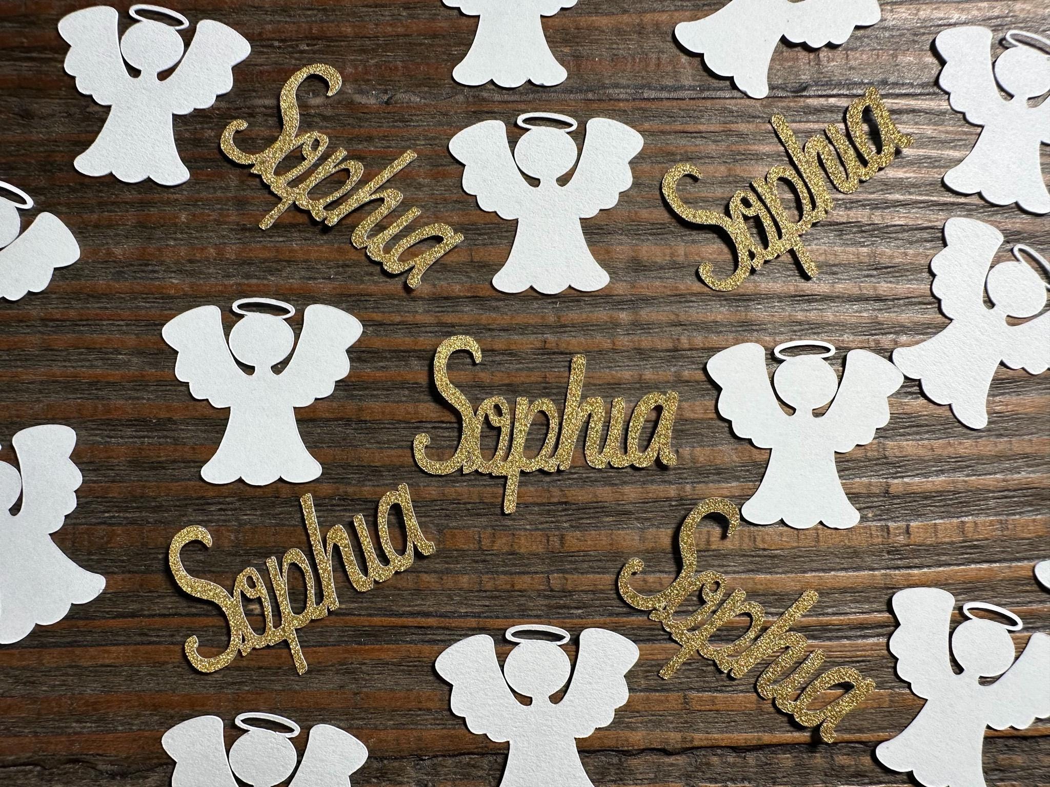 Add a heavenly, personalized touch to your celebration with this beautiful angel and name confetti mix! Perfect for decorating tables, filling party favors, or adding sparkle to invitations and gift wrapping.