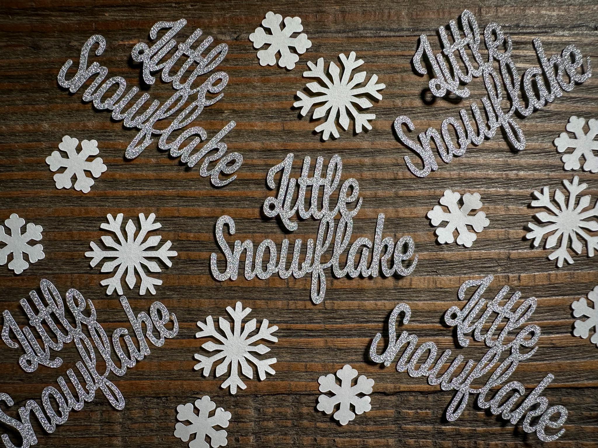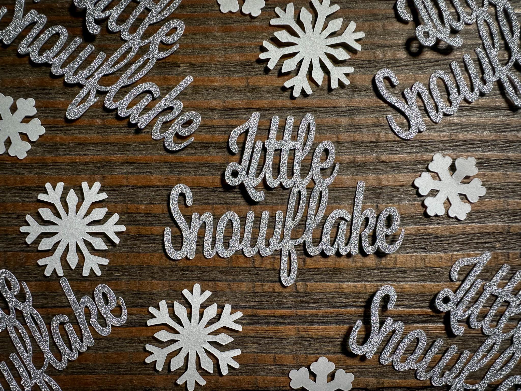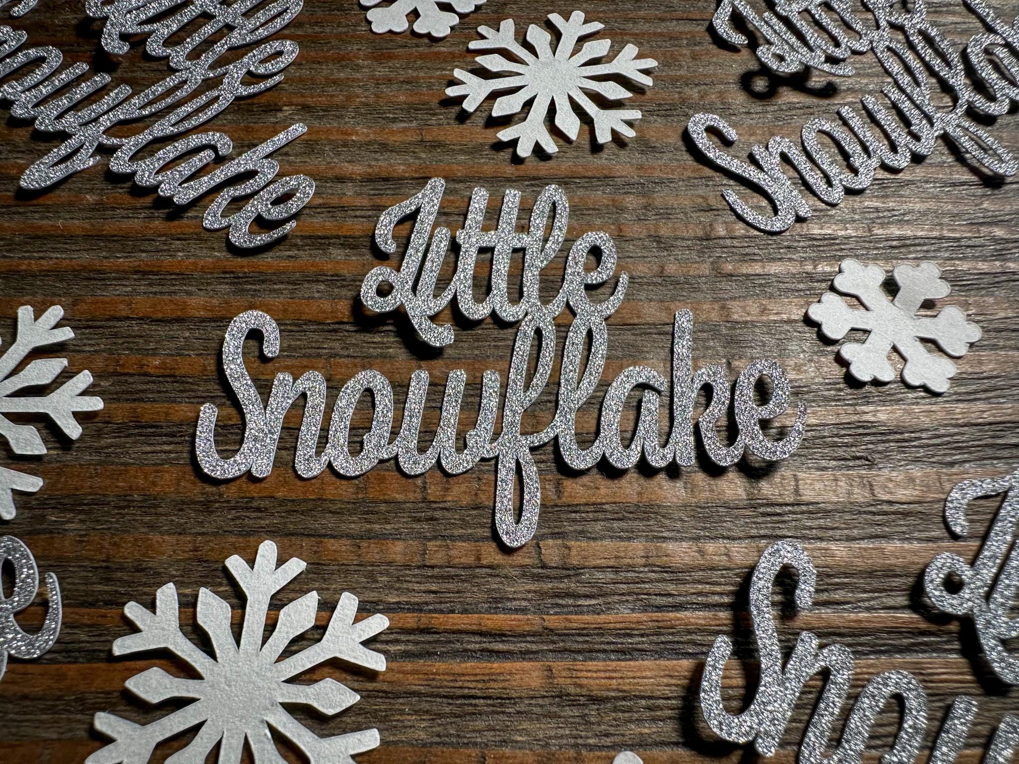 • 20 Silver Glitter “Little Snowflake” Pieces – Sparkly on the front, clean white on the back