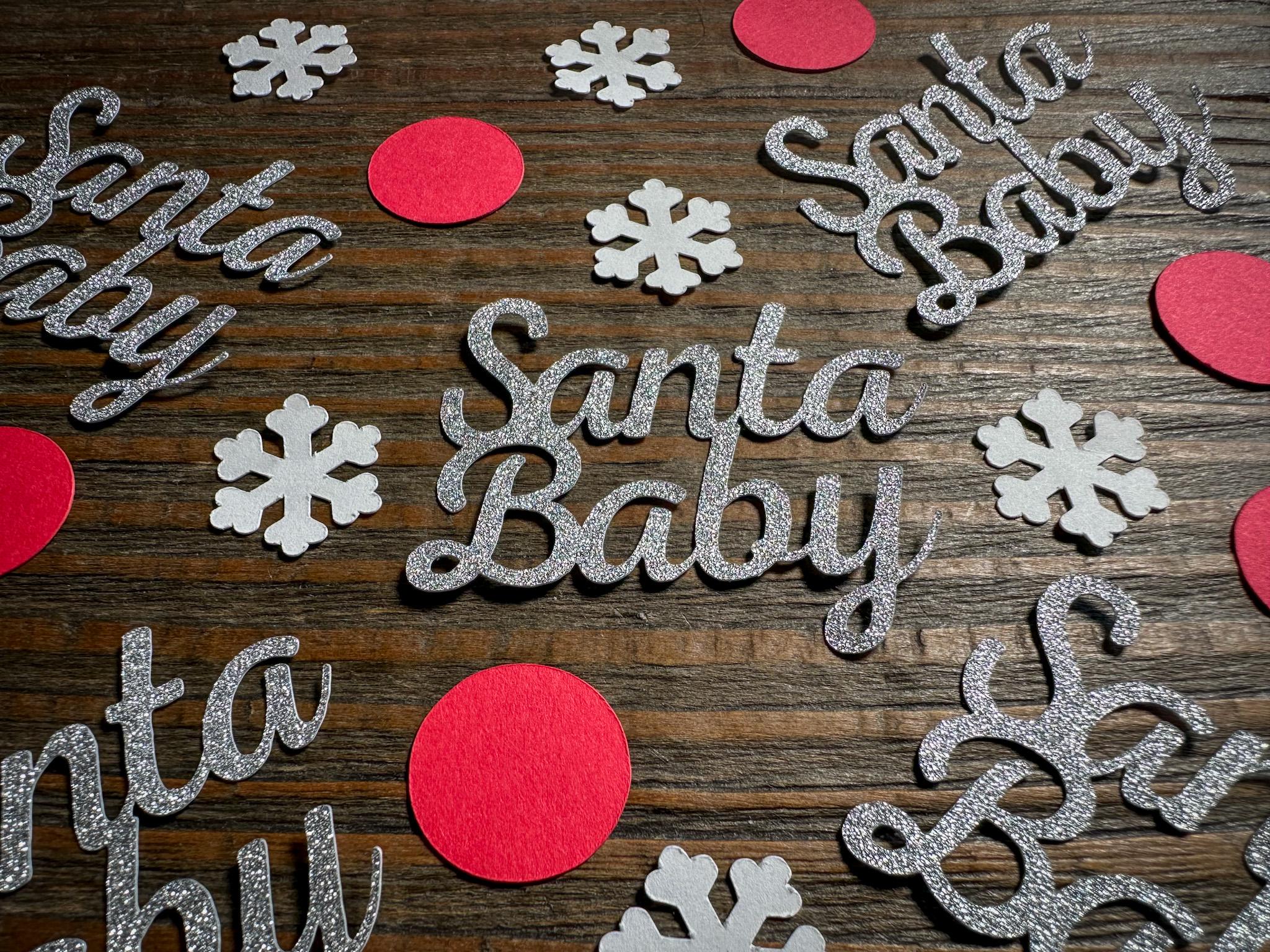 Whether you're announcing a little one on the way or celebrating with loved ones at a festive gathering, this Santa Baby confetti set brings sparkle and seasonal sweetness to any moment.