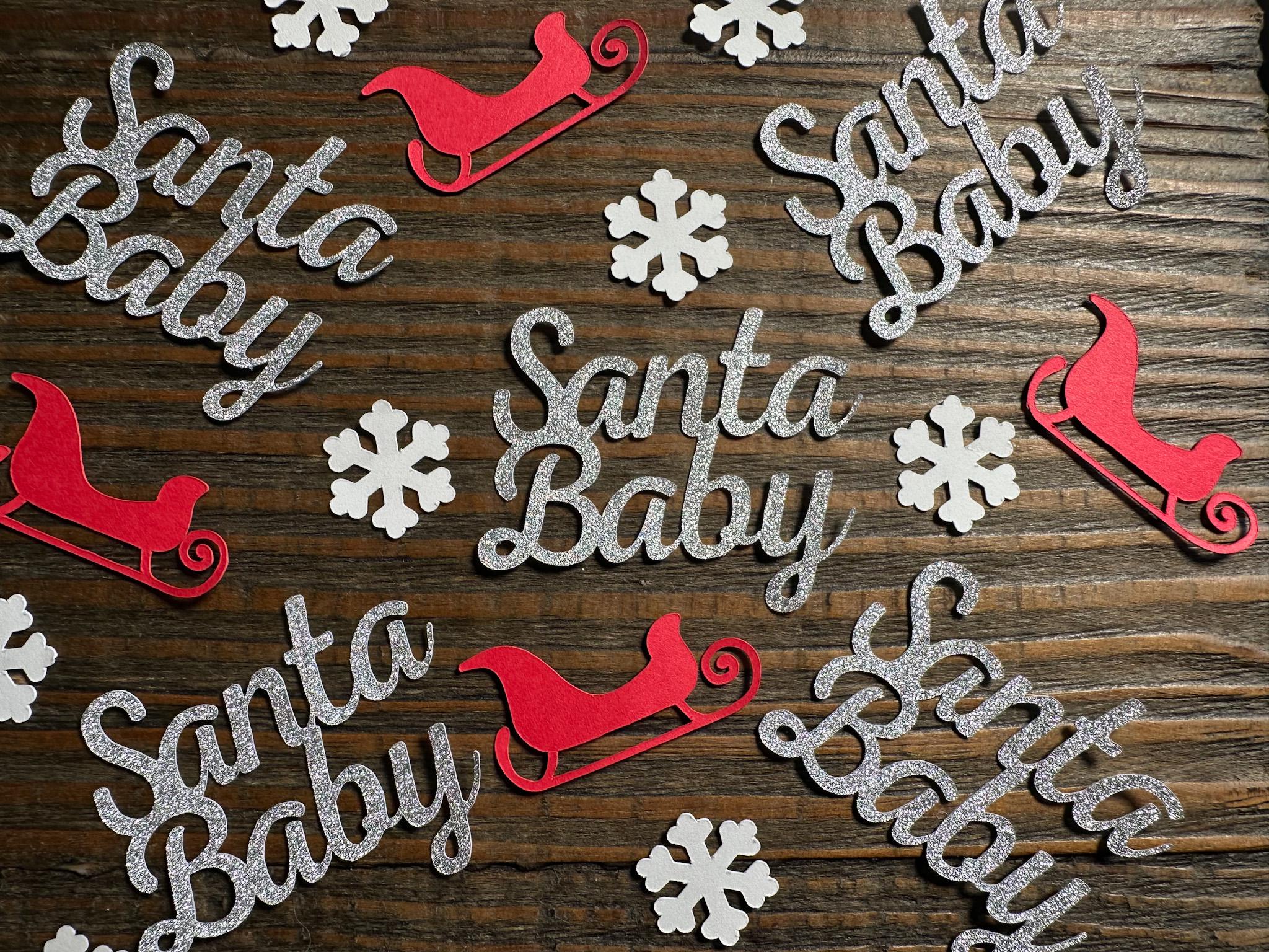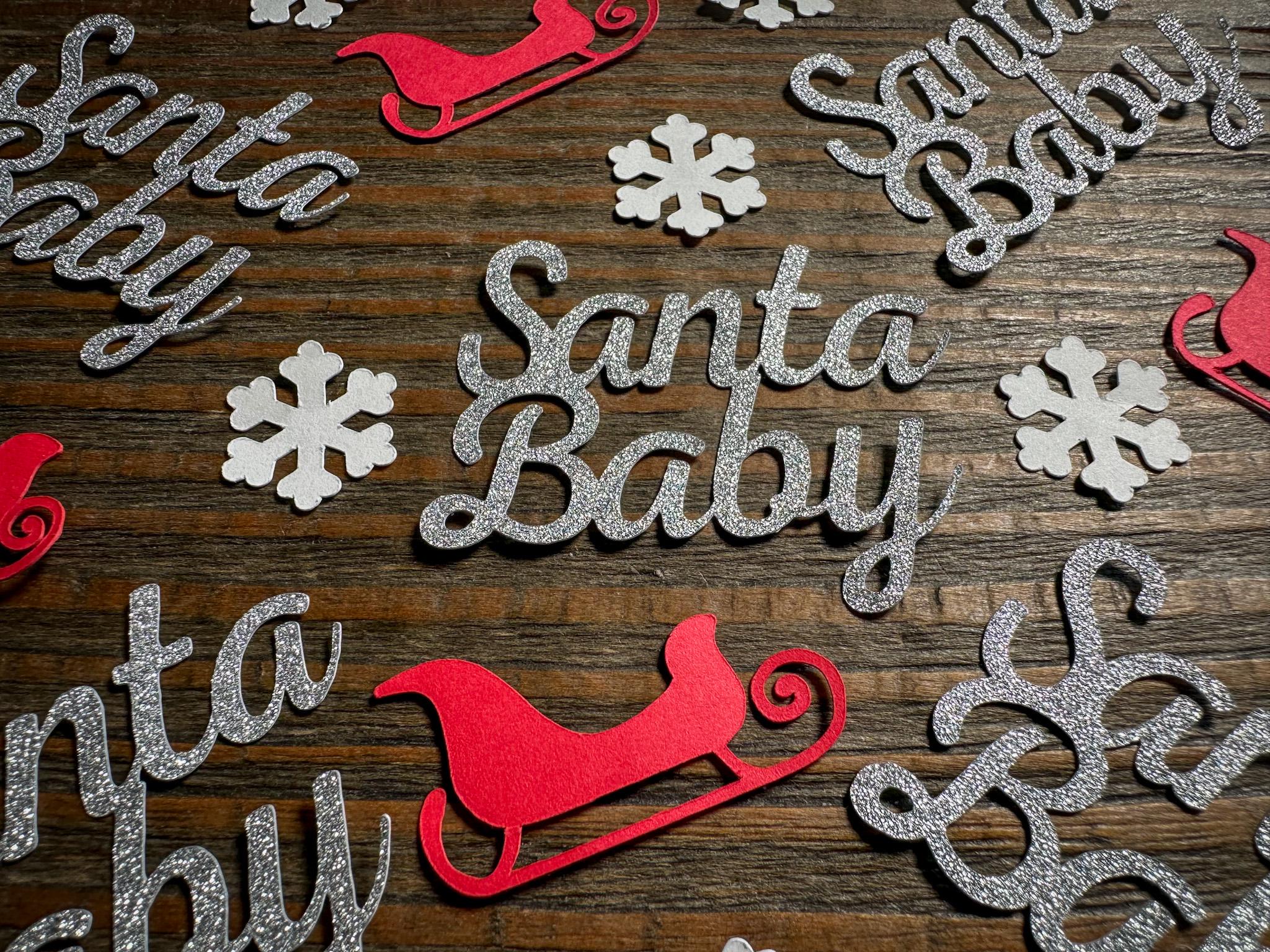 Create a festive, memorable celebration with this sweet and sparkly Santa Baby confetti—perfect for welcoming your holiday season baby or announcing your exciting news.