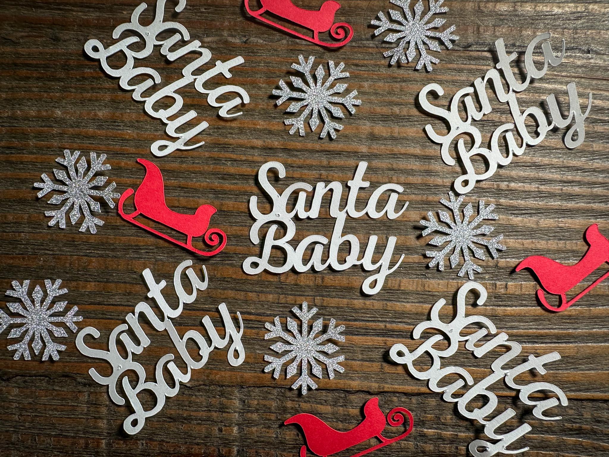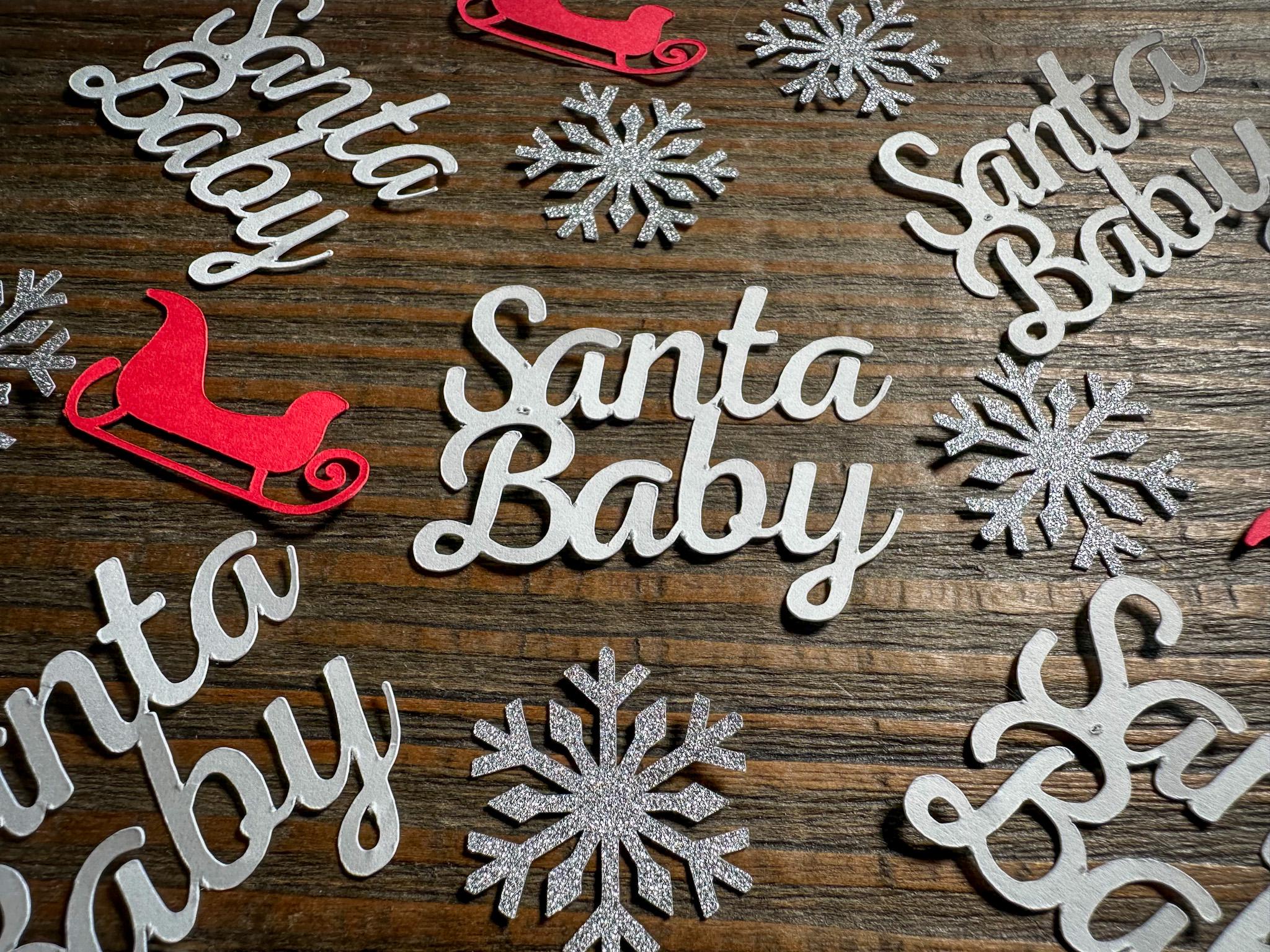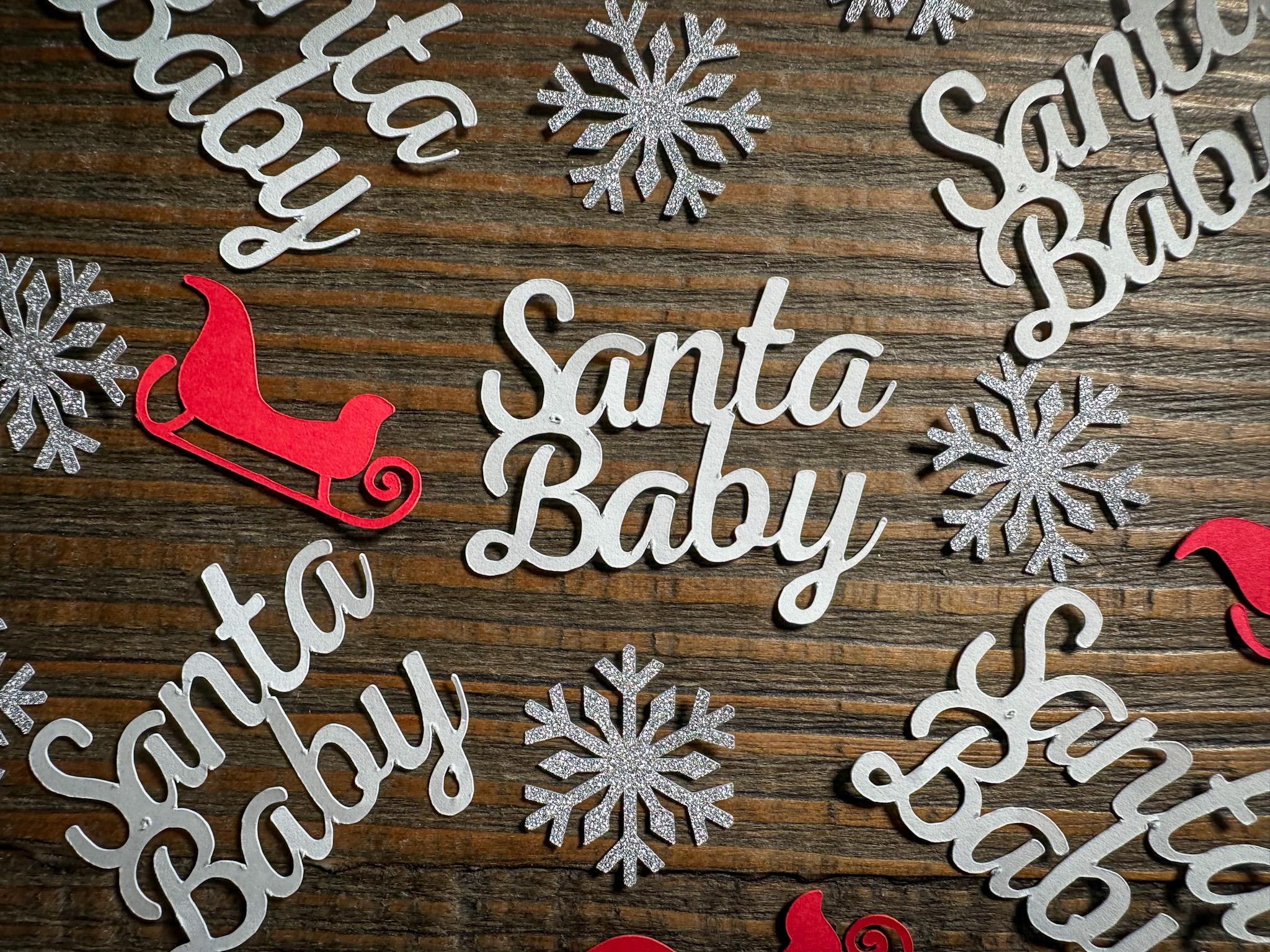 Bring seasonal joy and festive style to your celebration with this sweet and sparkling Santa Baby confetti set—ideal for making your winter-themed baby event unforgettable.