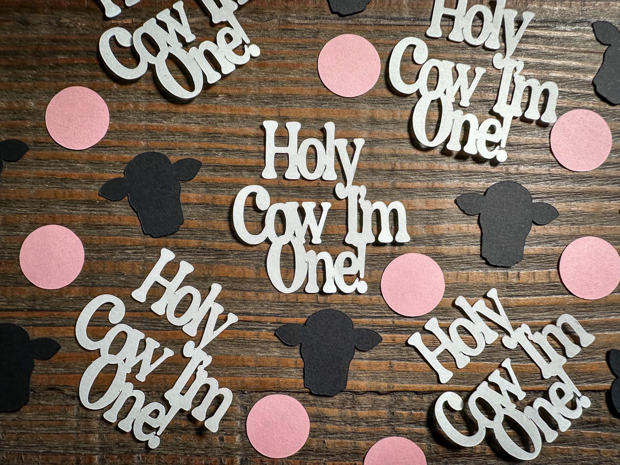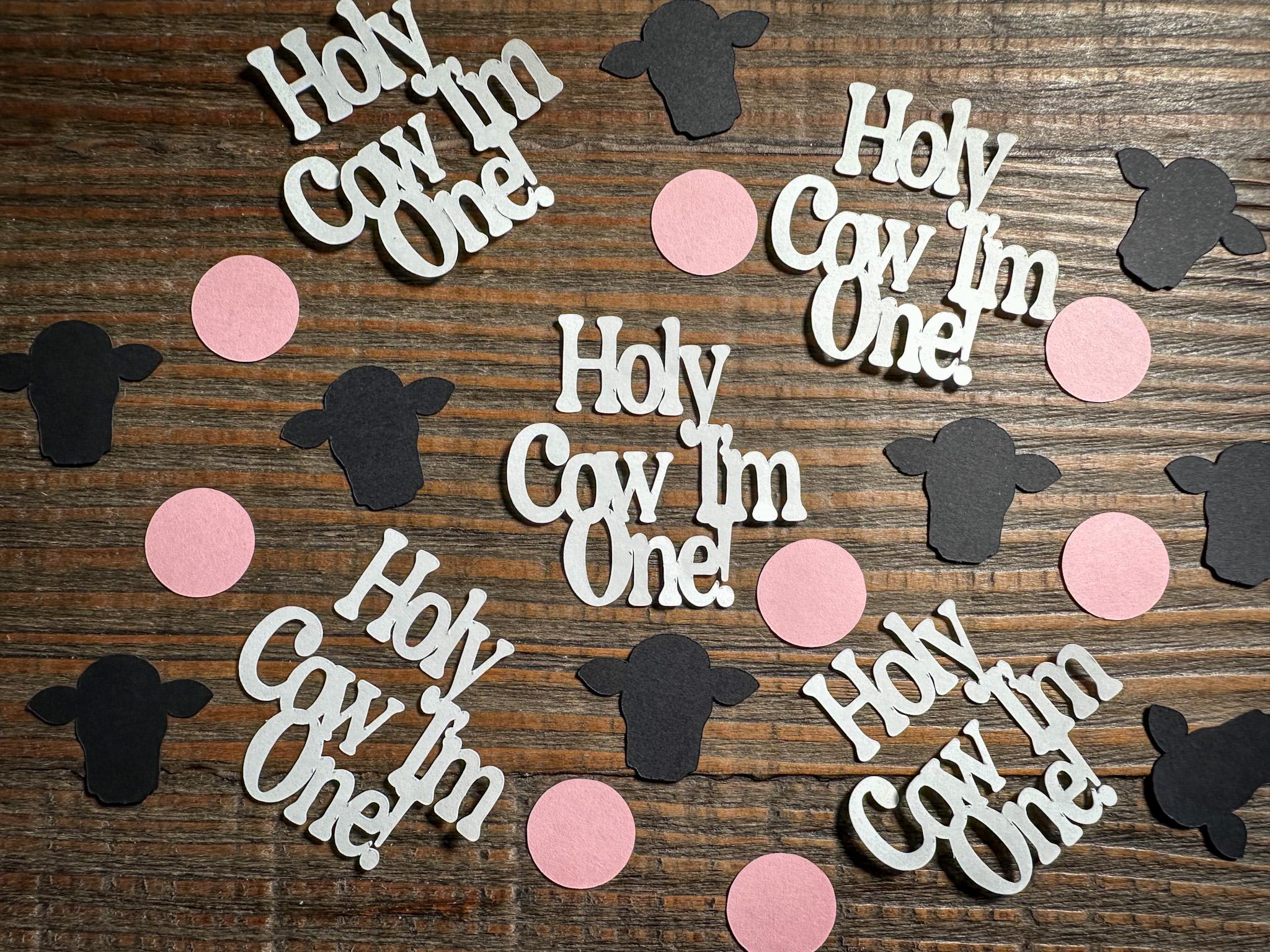 Make your little one’s first birthday extra adorable with this fun and festive “Holy Cow I’m One” confetti mix! Perfect for farm, barnyard, or cow-themed celebrations, this confetti set adds pops of color and personality to tables, favors, and party décor. Each piece is crafted from sturdy 65 lb cardstock for crisp, clean shapes.
