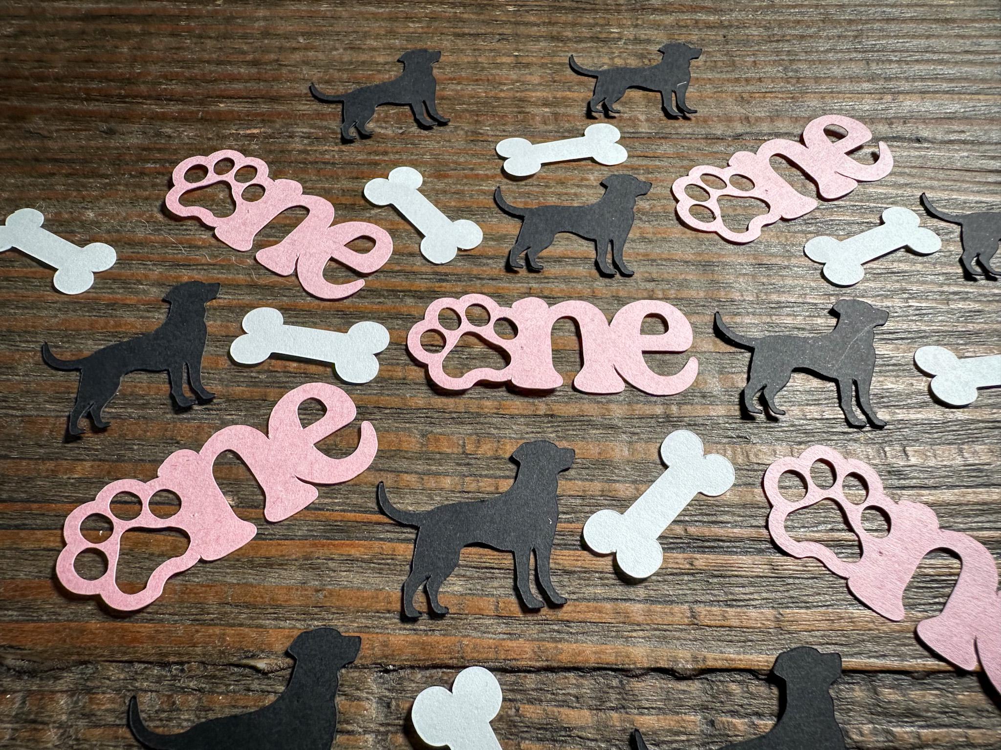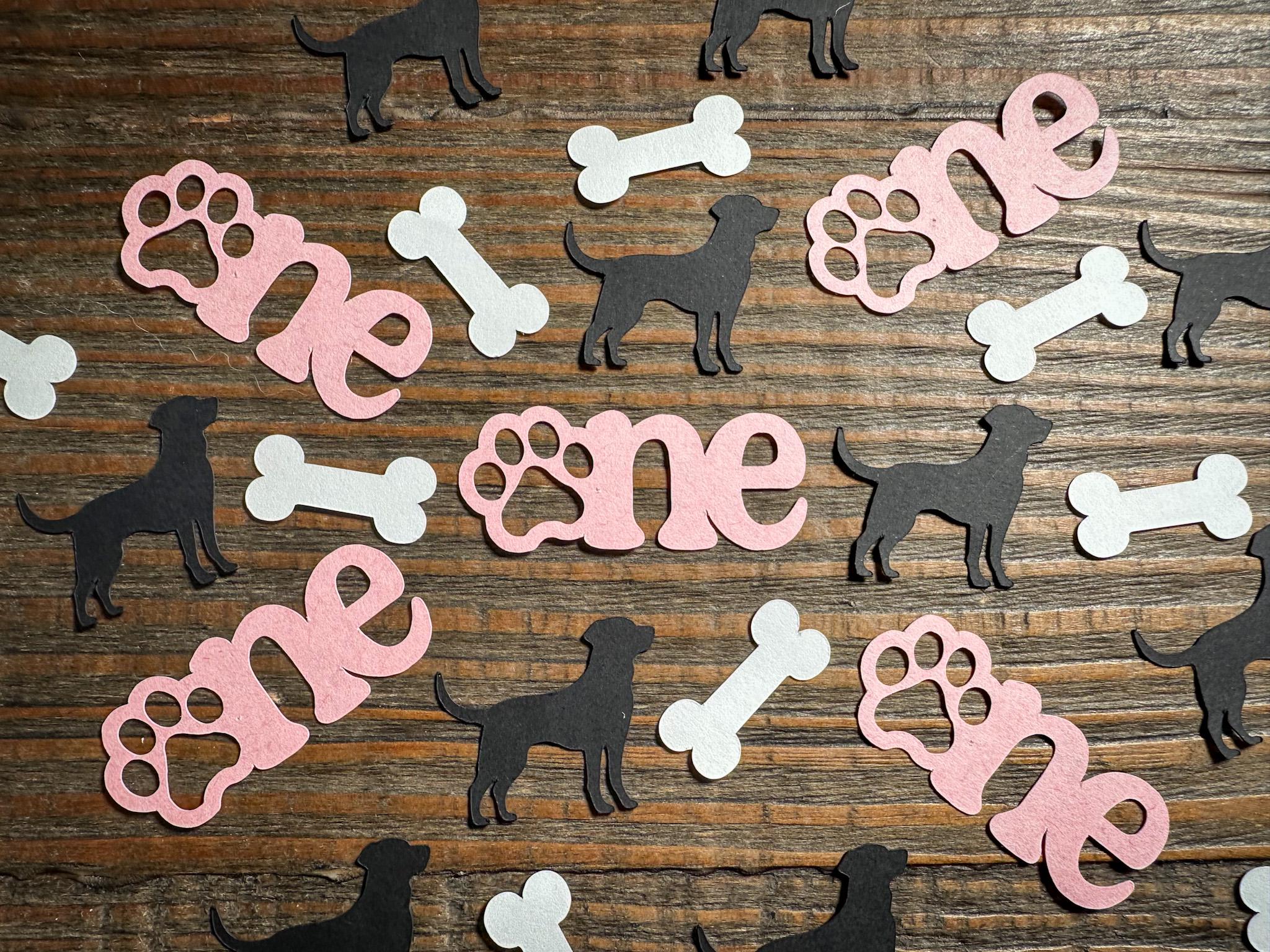 Dog First Birthday Confetti: Puppy Pawty "ONE" with Paw Print