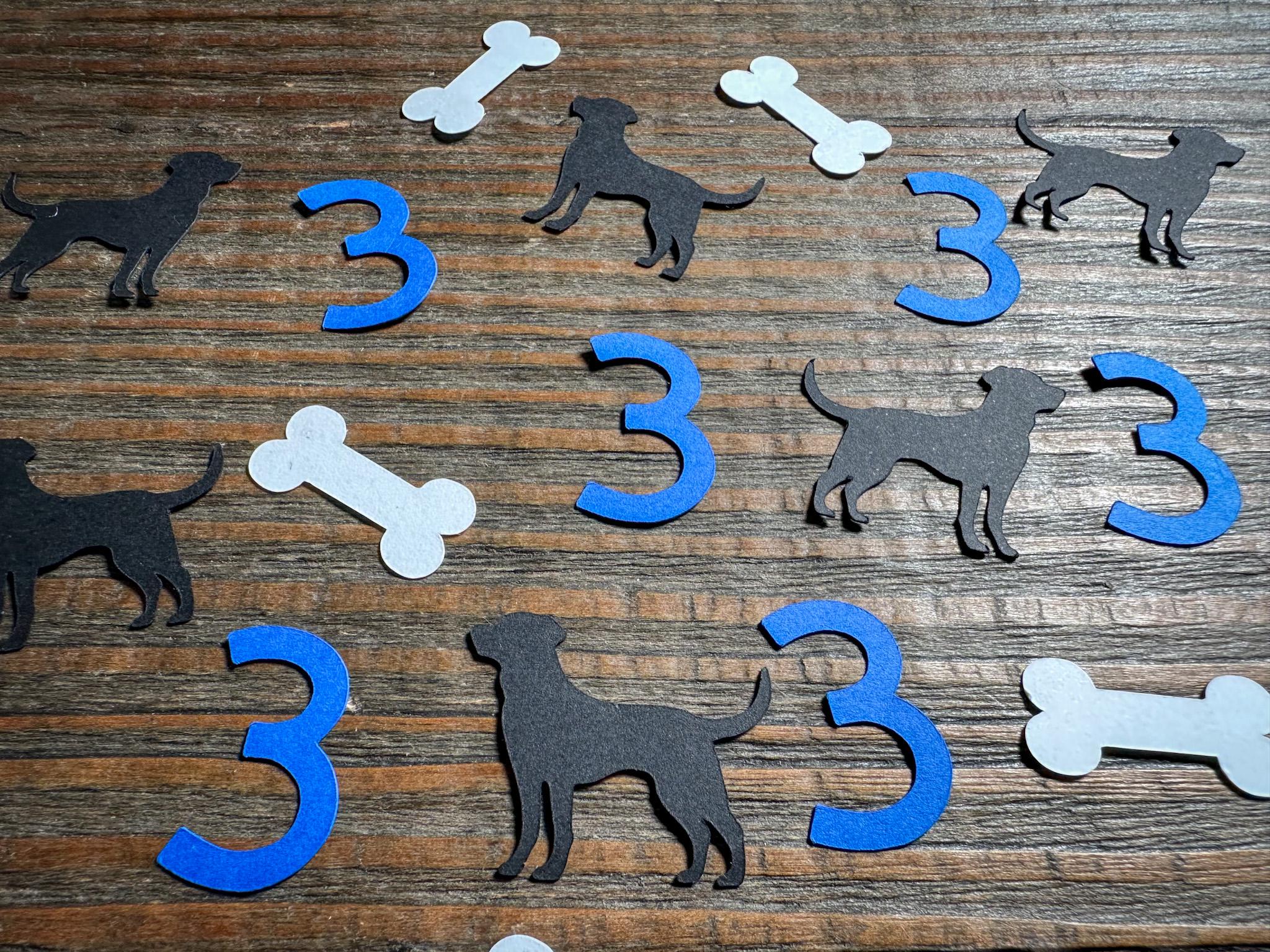Make your celebration extra fun with this adorable personalized age dog confetti set! Perfect for dog-themed parties, kids’ birthdays, puppy birthdays, and gotcha days, this confetti adds a playful and customized touch to any party table, invitation, or decoration. Each piece is handcrafted from sturdy 65 lb cardstock and made just for you.
