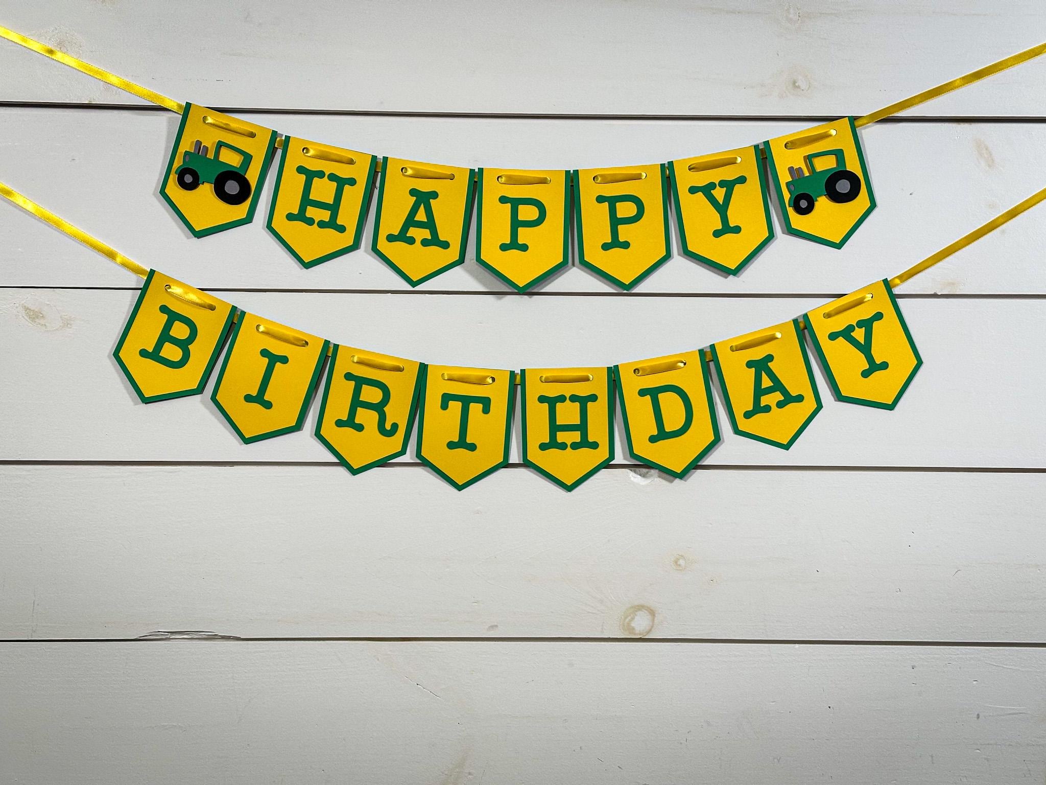 Celebrate your little farmer in style with this Green and Yellow Tractor Happy Birthday Banner 🚜