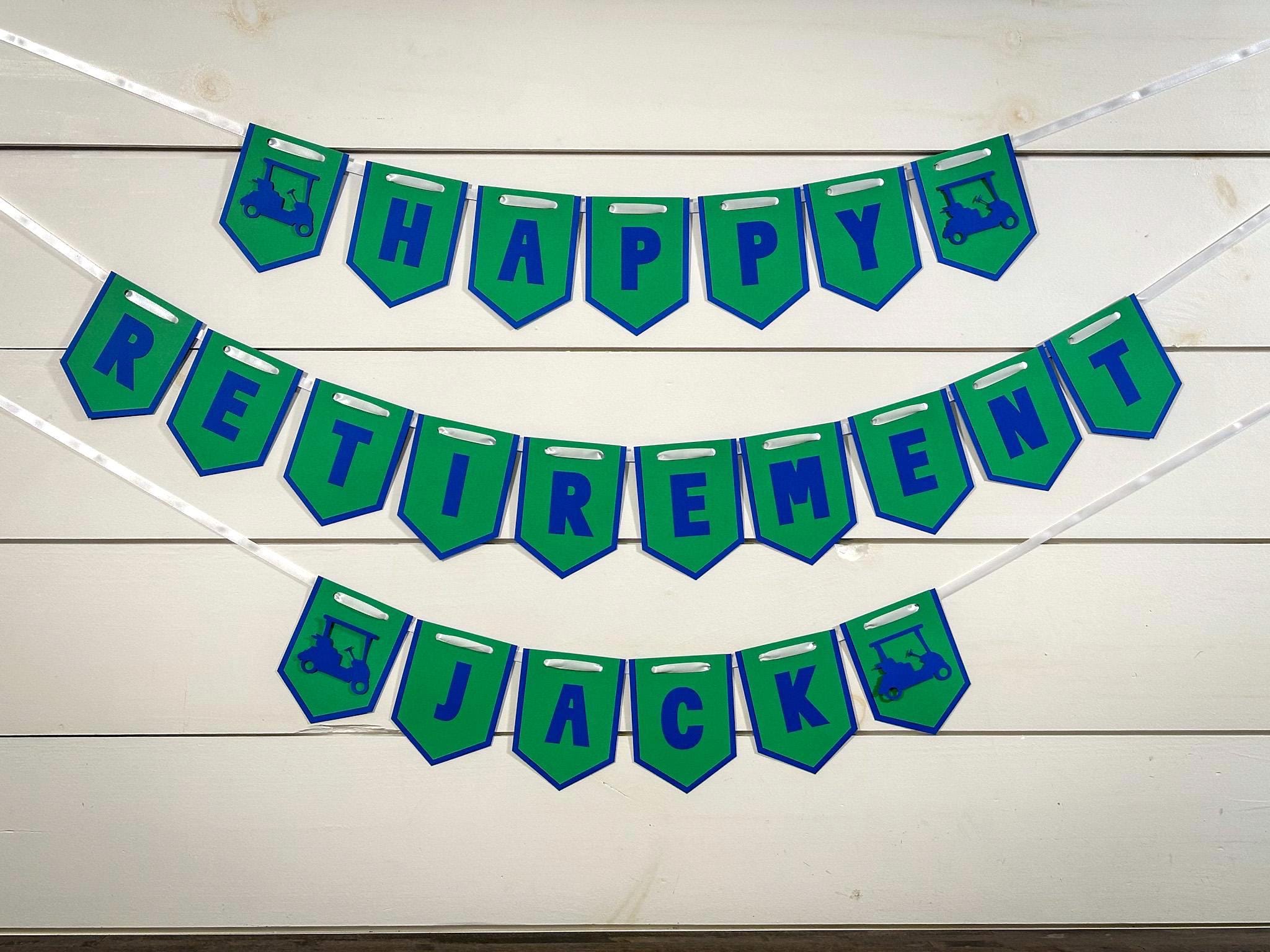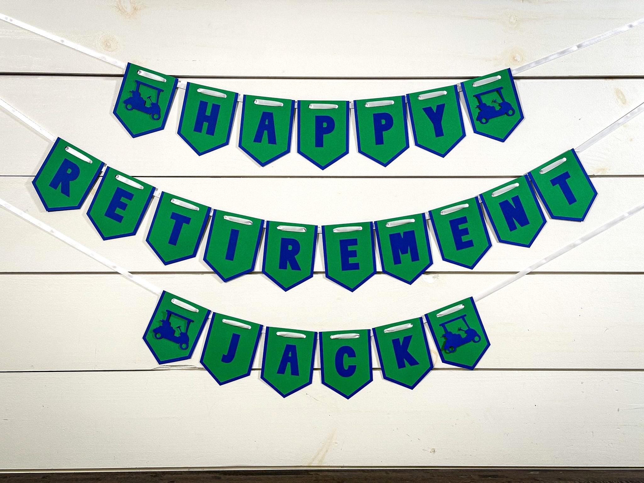 Celebrate the start of a well-earned retirement with this golf-themed Happy Retirement banner—perfect for parties, photo backdrops, or clubhouse celebrations!