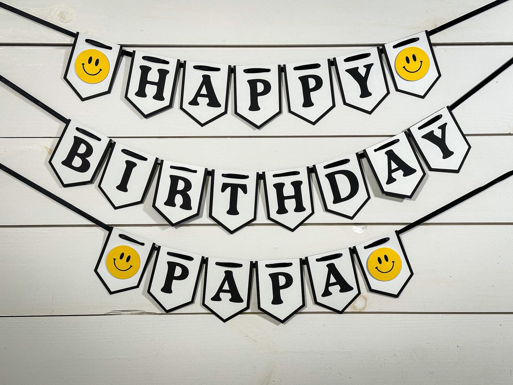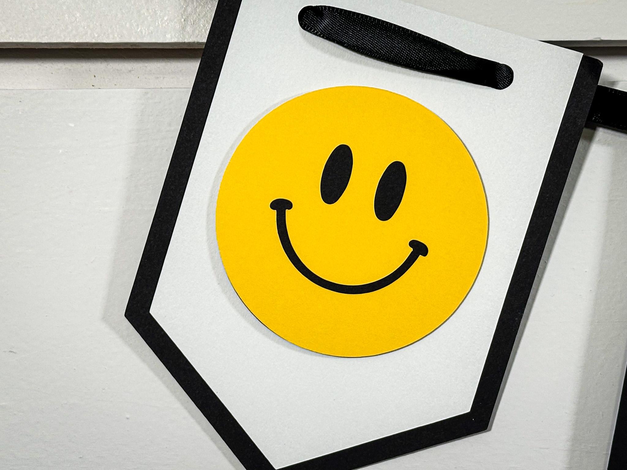 Add the perfect pop of fun to your celebration with this stylish Smiley Face Happy Birthday Banner! Designed with a trendy black and white color palette and playful dimensional smiley faces, this banner is perfect for a “One Happy Dude”, “Happy Girl”, retro, or modern birthday party theme.