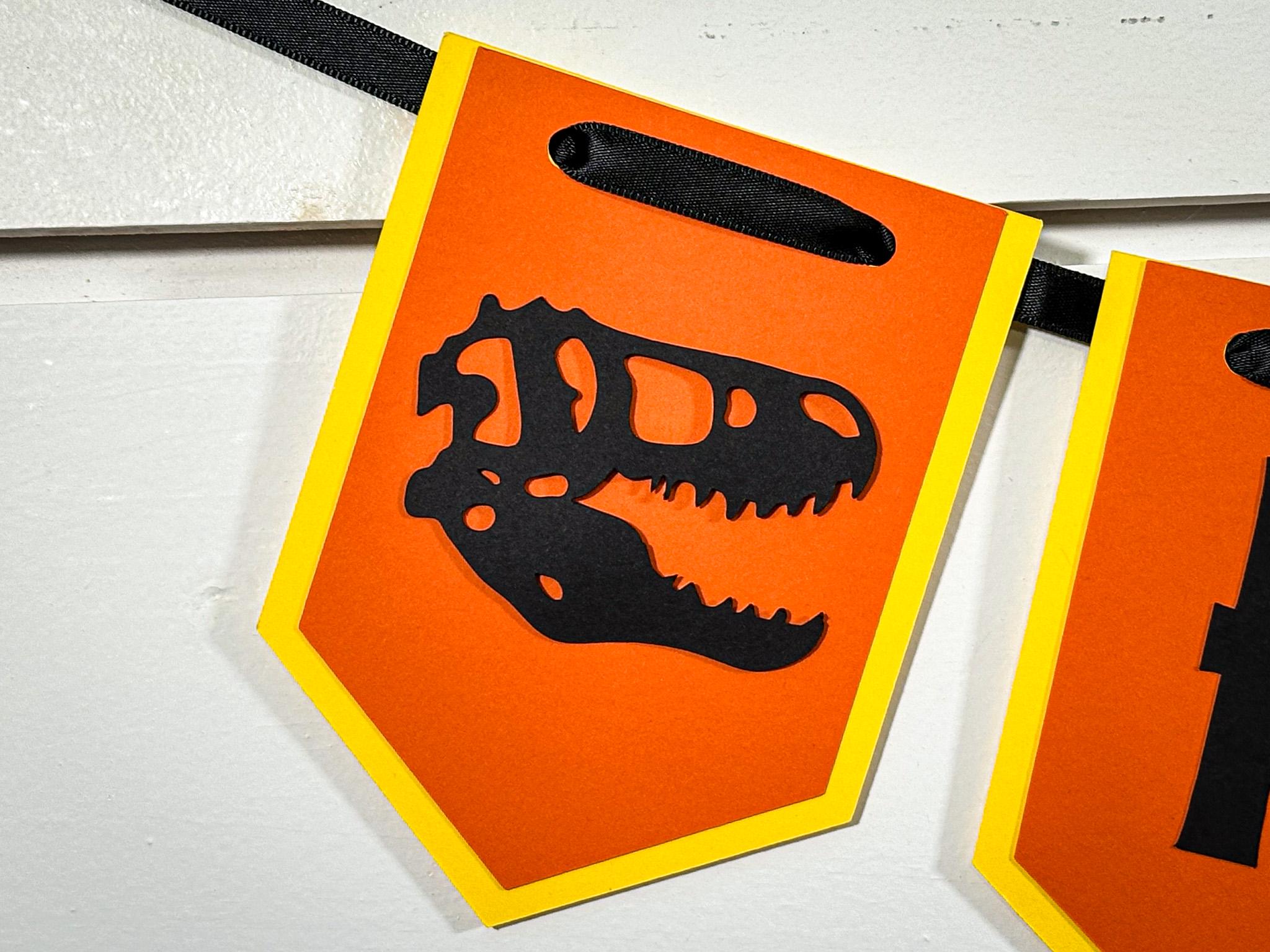 Dinosaur head skull accents attached with foam dots for a fun 3D effect