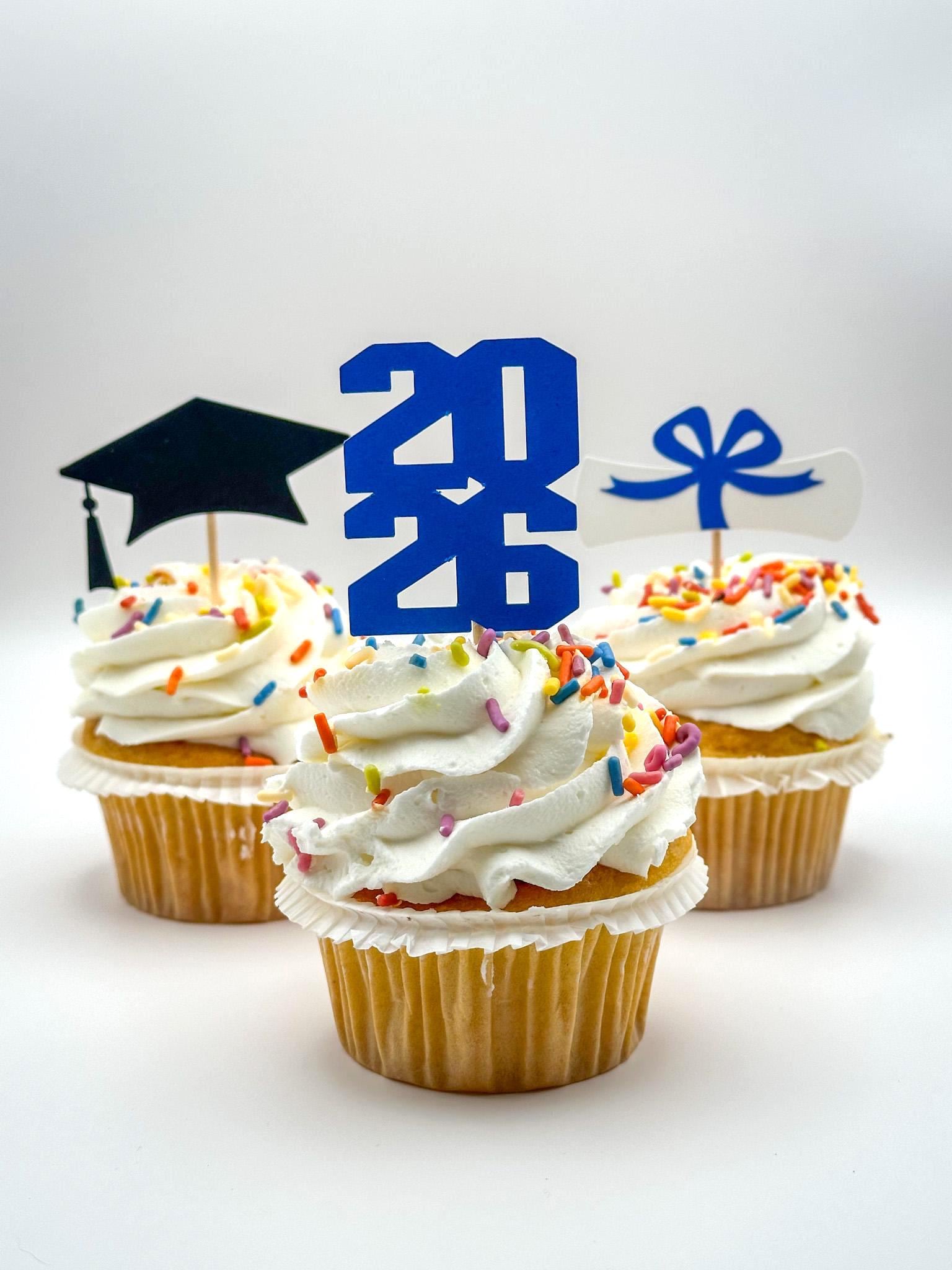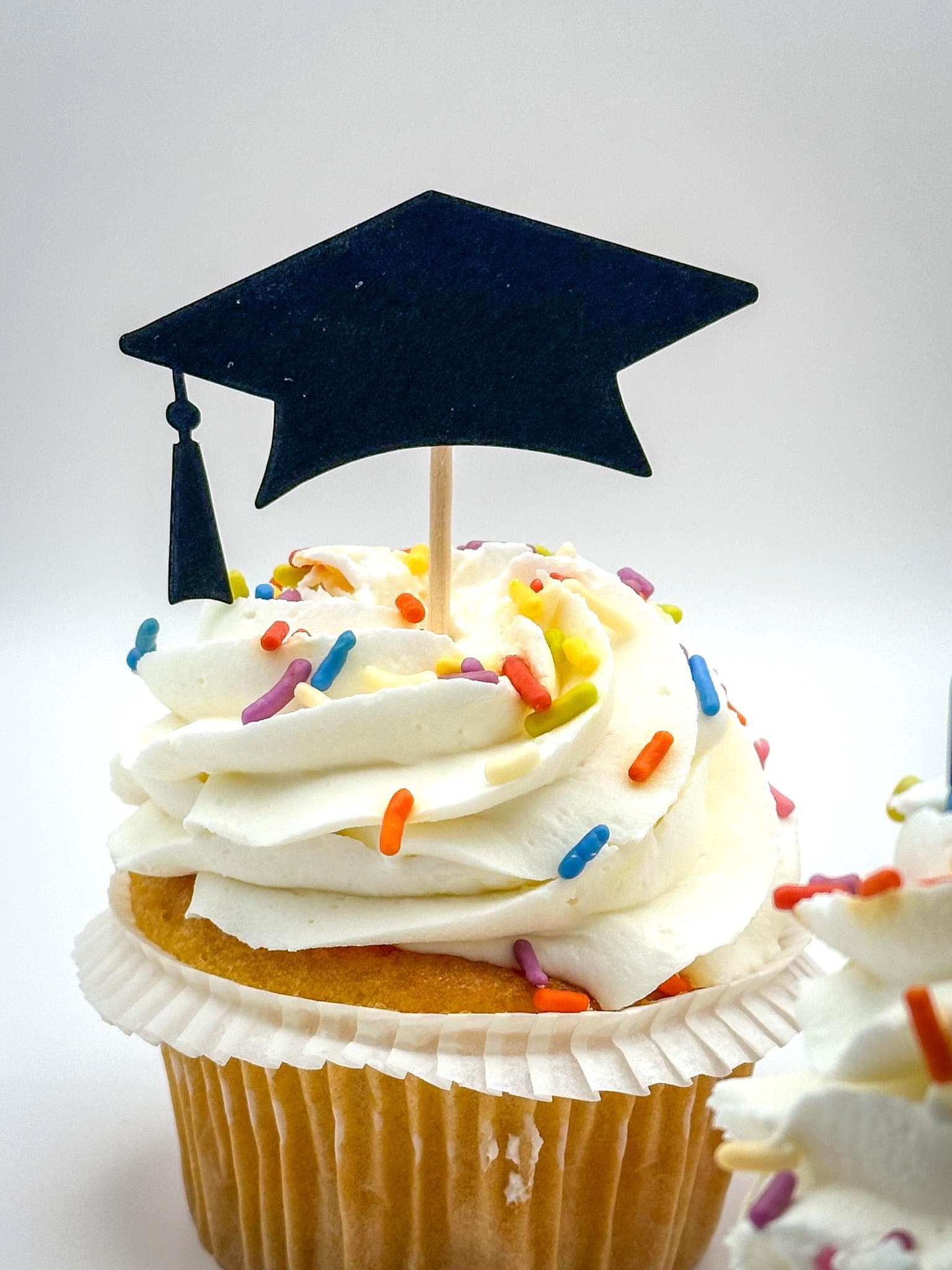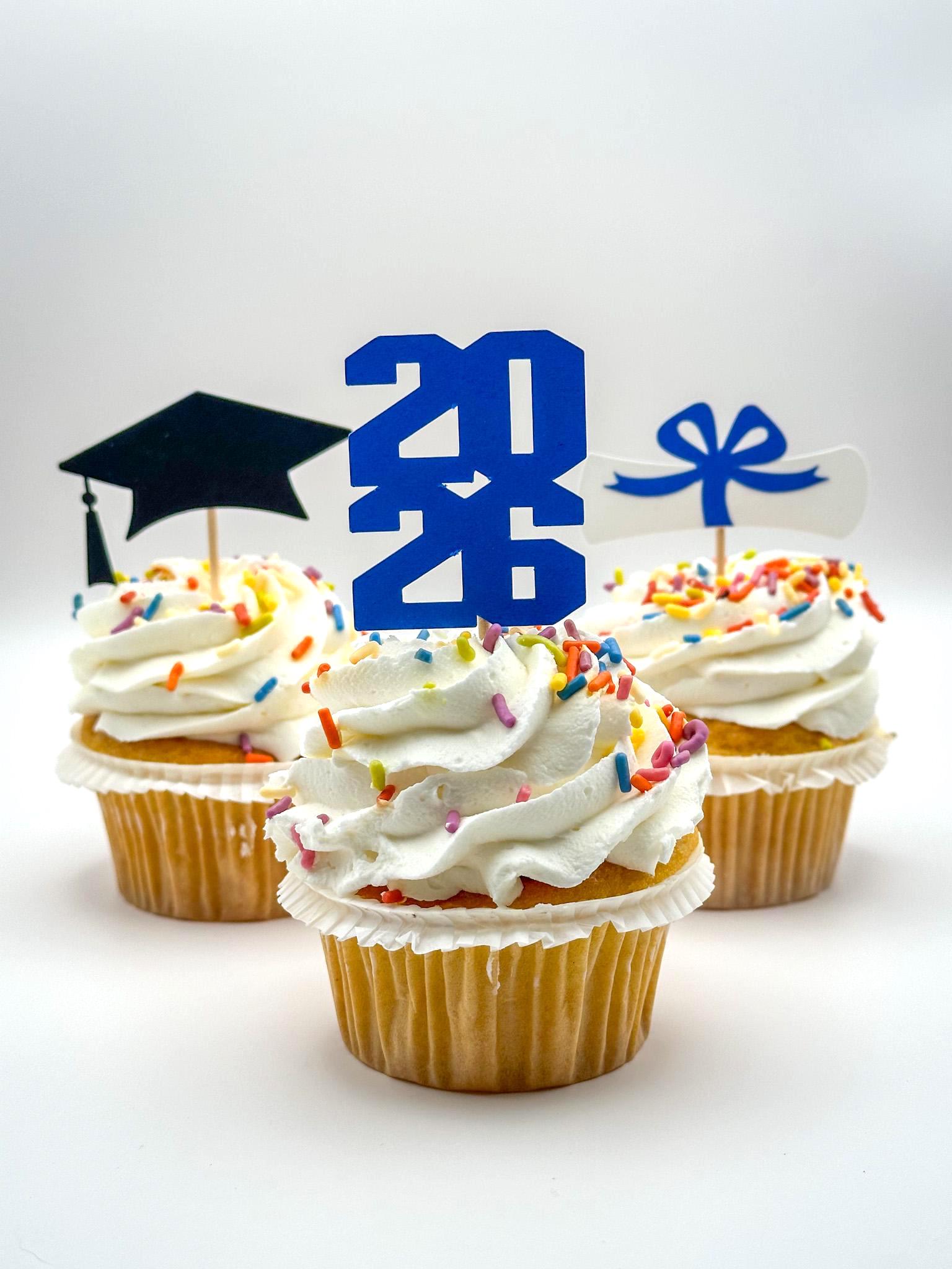 Celebrate your graduate in style with these classic and customizable graduation cupcake toppers! Perfect for high school or college graduation parties, these toppers add a festive and polished touch to your dessert table.