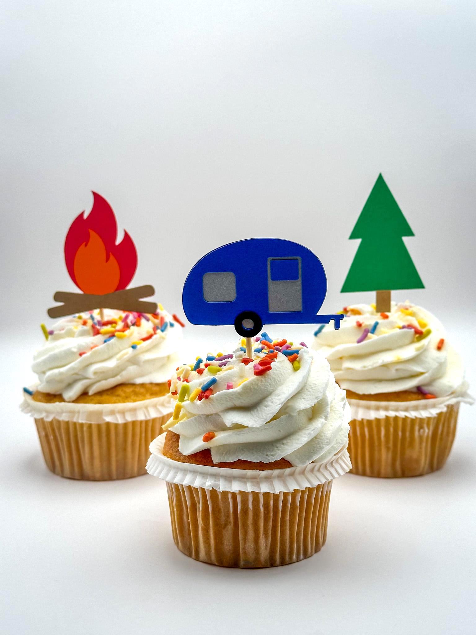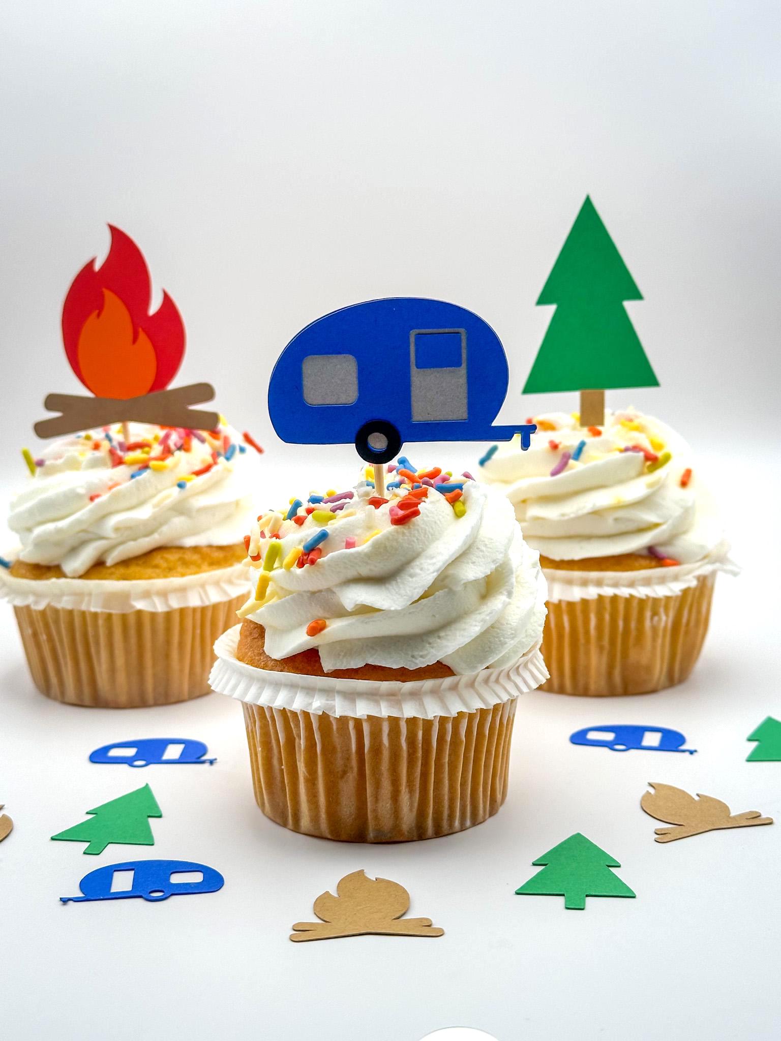 Make your celebration extra cozy and adventure-ready with these camping cupcake toppers! 🏕️🔥✨
