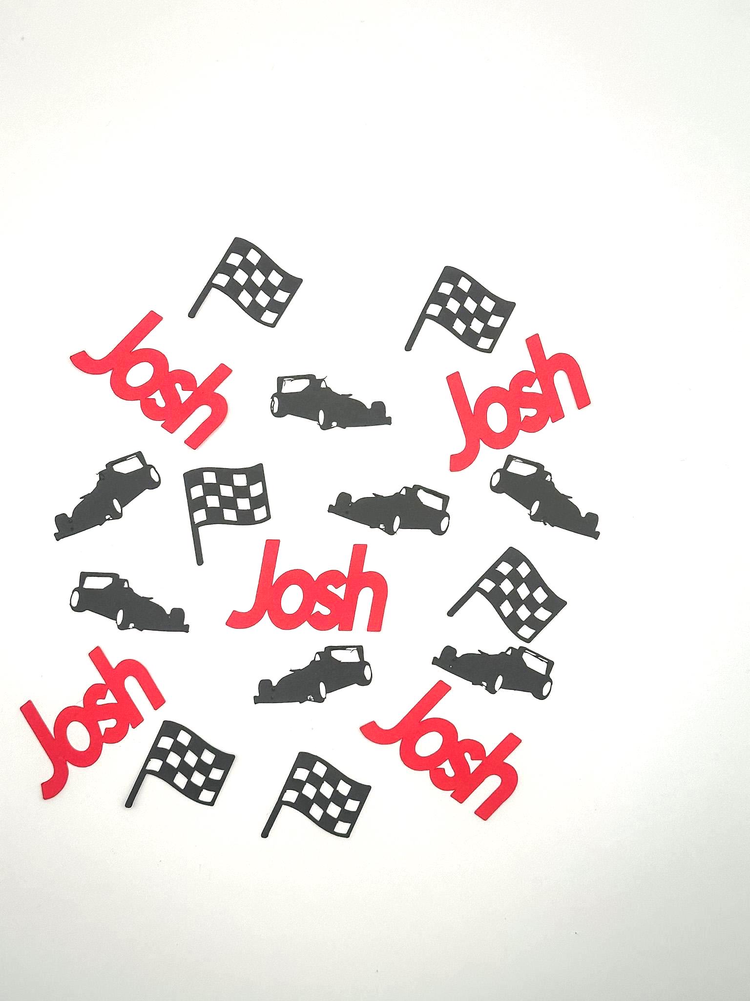 Sprinkle across tables, decorate dessert displays, tuck into invitations, or add to party favor bags for a coordinated racing theme.