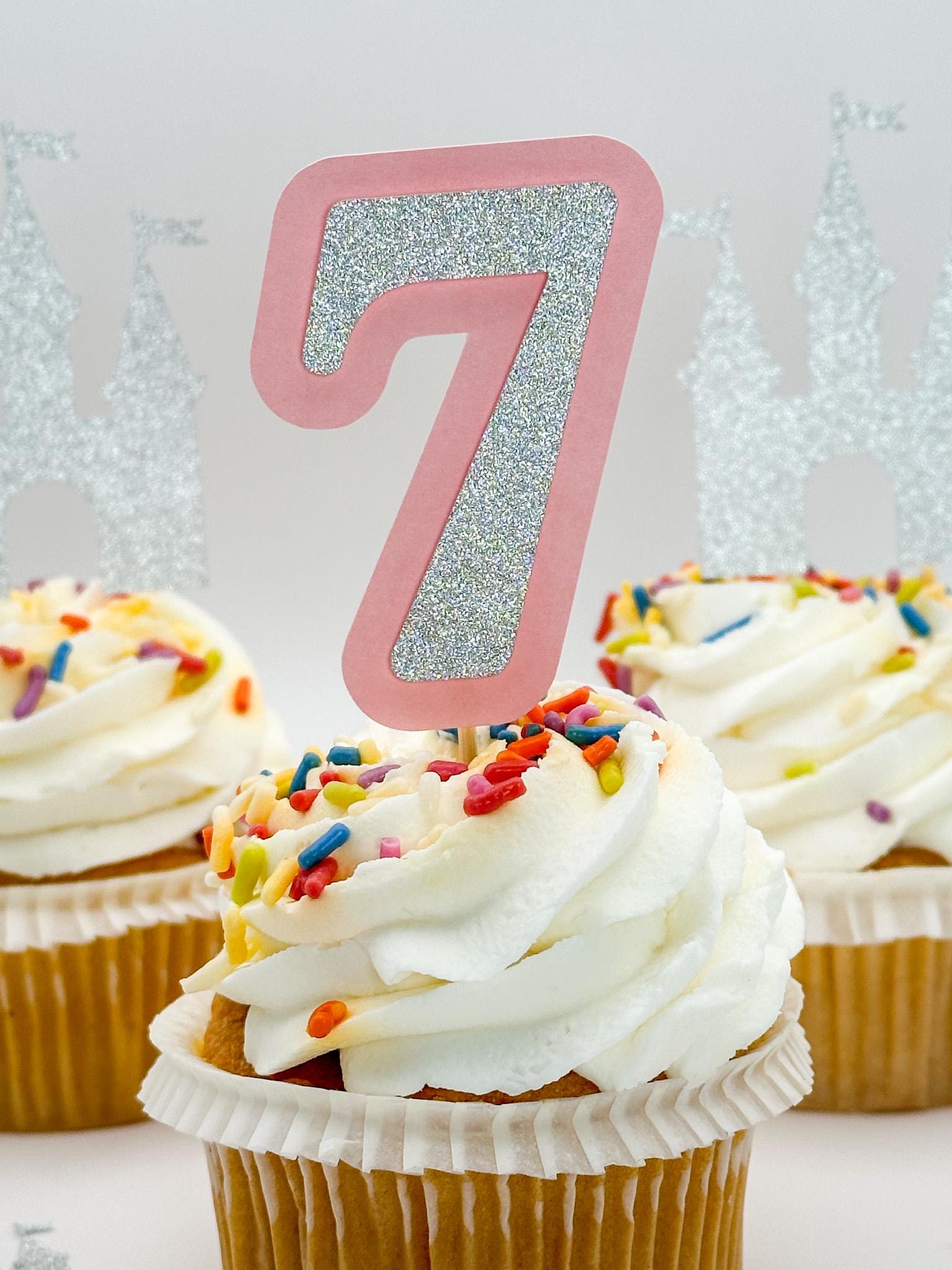 This set includes a mix of elegant glitter castle toppers and personalized number toppers, making it perfect for celebrating any age in royal style. The dimensional number toppers add a special touch with a layered 3D design that truly stands out on your cupcakes.