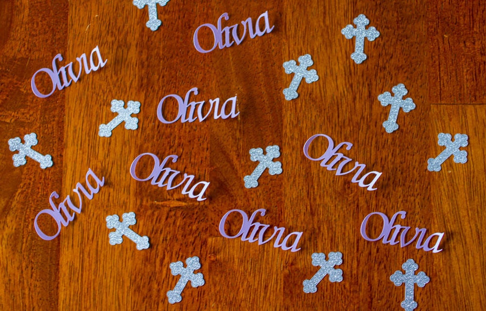Are you celebrating a Baptism, First Communion, or Confirmation? This personalized confetti is perfect for your table!