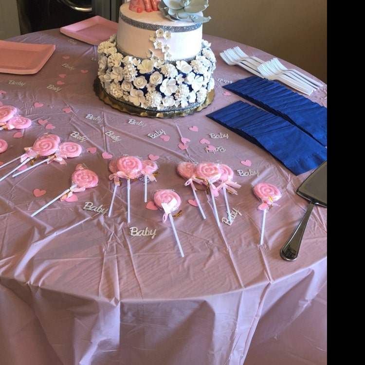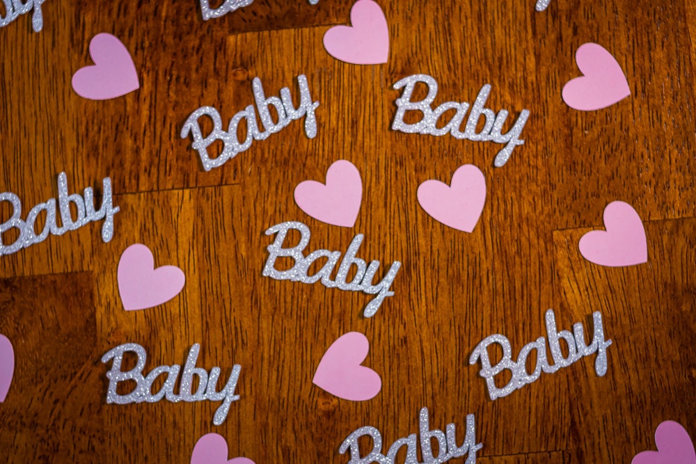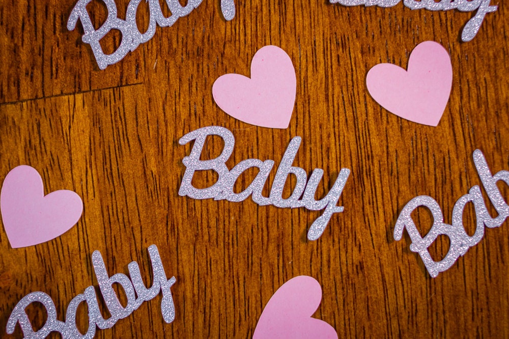 If you are hosting a baby shower don't forget to decorate your tables! This silver glitter baby confetti with pink hearts is the perfect addition!