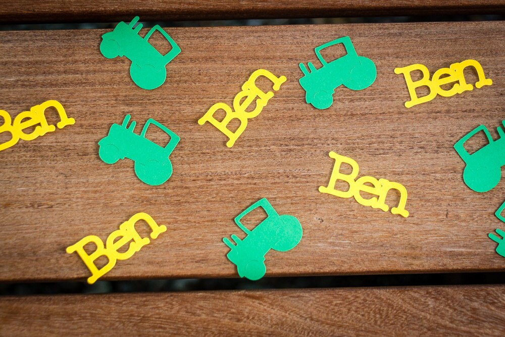 Are you throwing a tractor, farm, or John Deere party? This personalized confetti is the perfect addition to your party table!