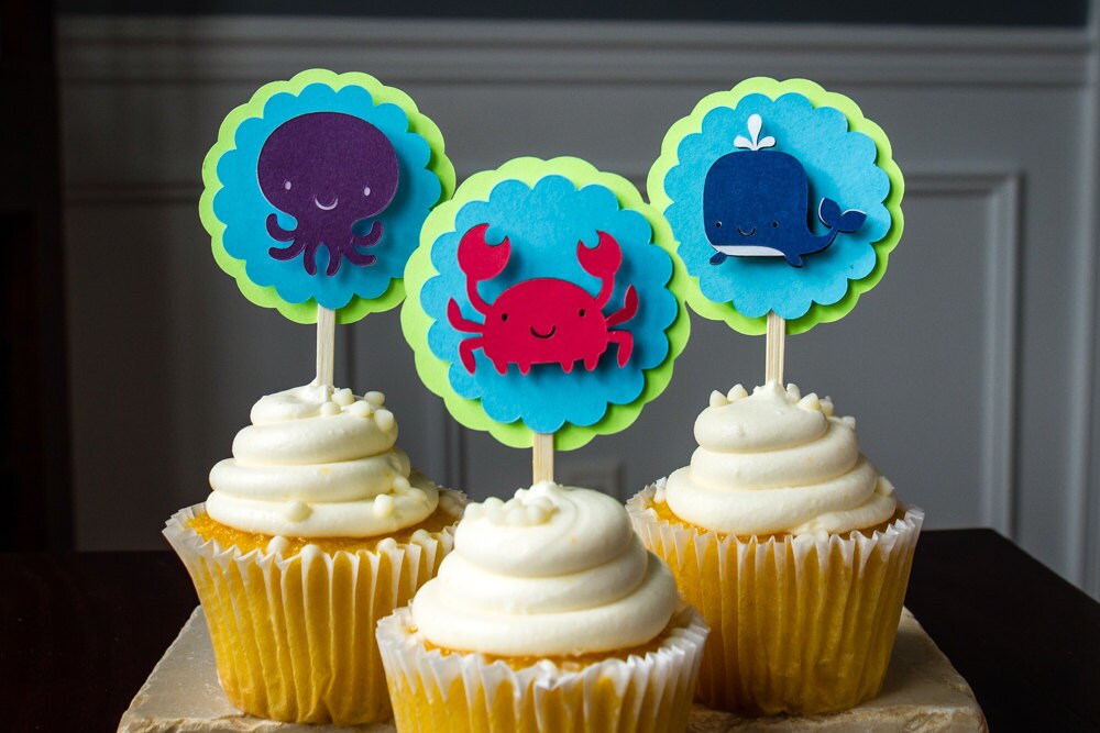 If you are hosting an under the sea themed party don't forget your dessert table! These handmade cupcake toppers are the perfect way to carry your theme throughout the party!