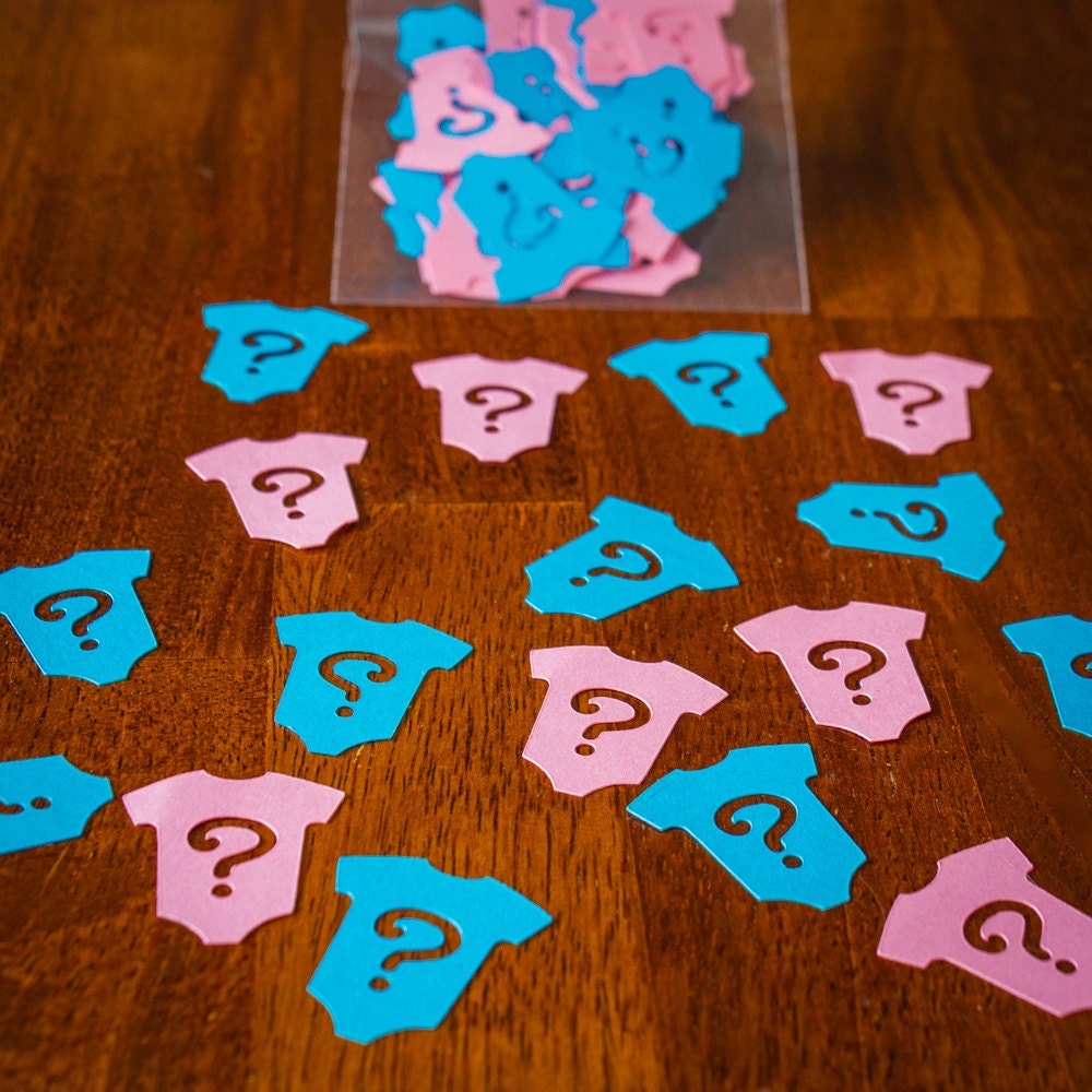 This listing is for a package of 100 pieces of confetti. It includes 50 pieces of pink and 50 pieces of blue. The confetti is made from premium card stock and each piece measure approximately 1.25 inches tall.