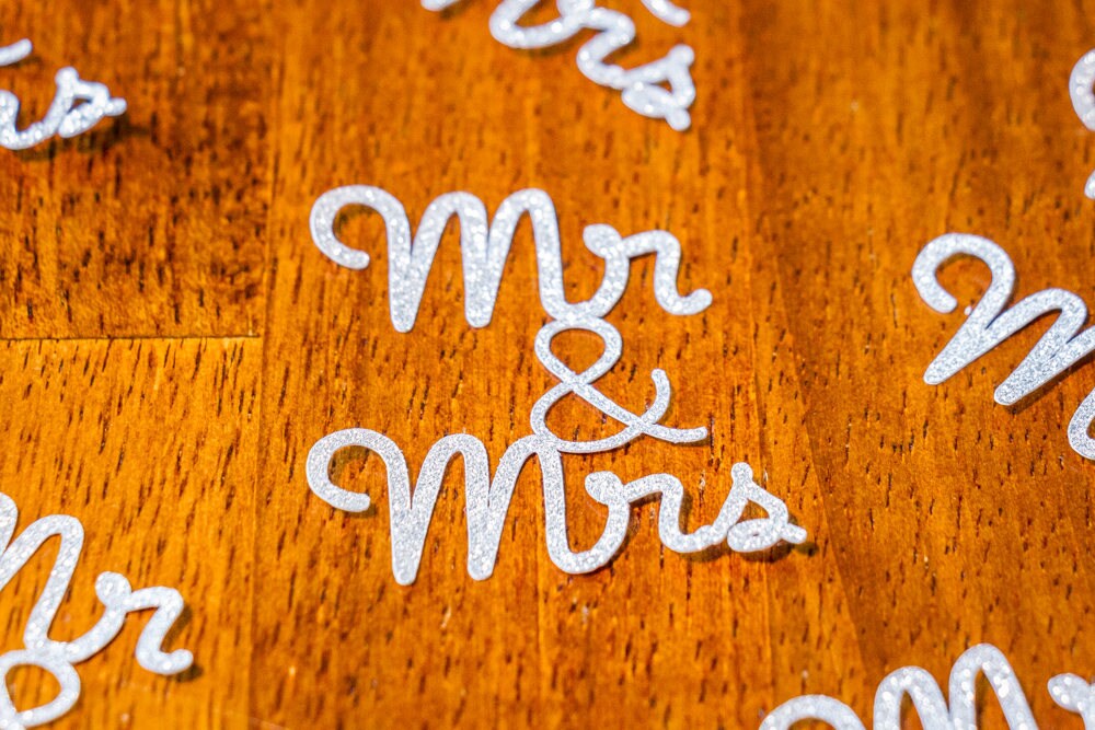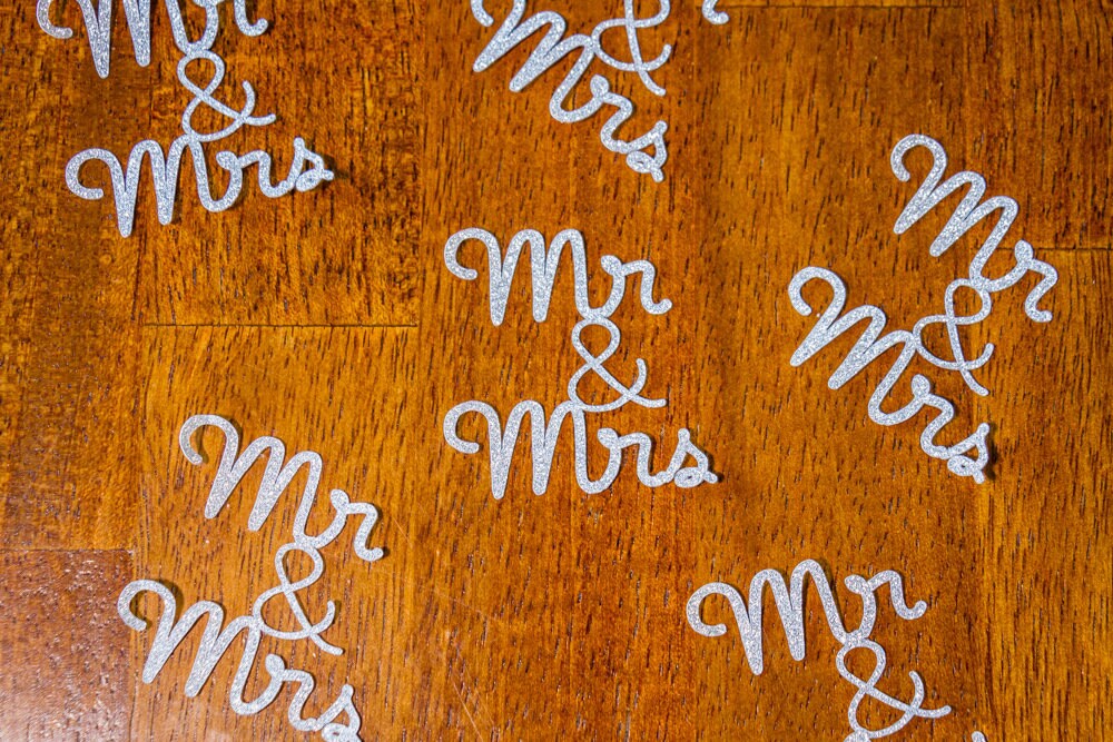 Add a touch of sparkle to your events decor with these silver glitter Mr and Mrs confetti! They are perfect for weddings, engagement parties, and bridal showers! The confetti may also be used as envelope stuffers.