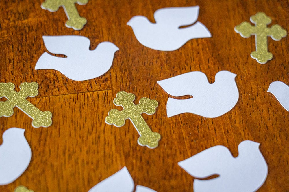 Add a touch of sparkle to your event tables with this dove confetti! This confetti is perfect for a Baptism, First Communion, or Confirmation celebration!