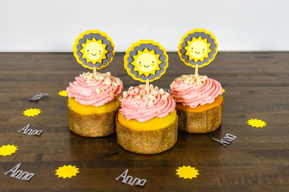 You Are My Sunshine Theme is perfect for a first birthday or a baby shower! Continue your theme with these sunshine cupcake toppers!