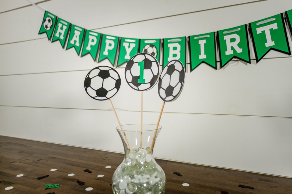 These soccer centerpieces are the perfect personalized touch to your soccer party decor!