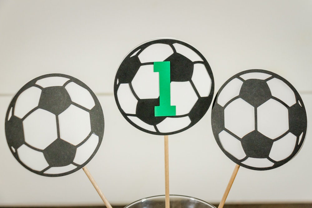 This listing is for a set of 3 picks and includes two plain soccer balls and one with the age. They are approximately 11.5 inches tall and are double sided. The soccer balls are made of premium card stock and measure approximately 3 inches in diameter.