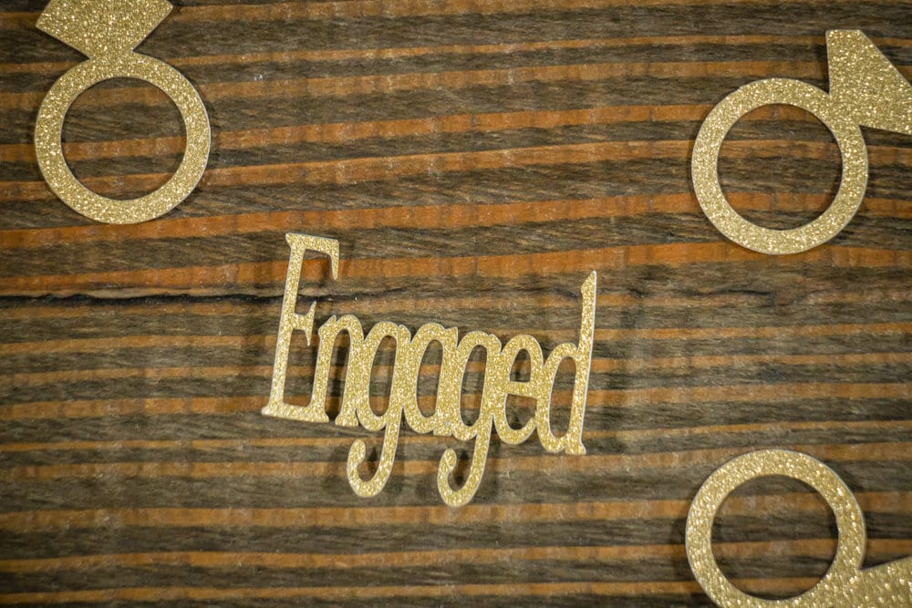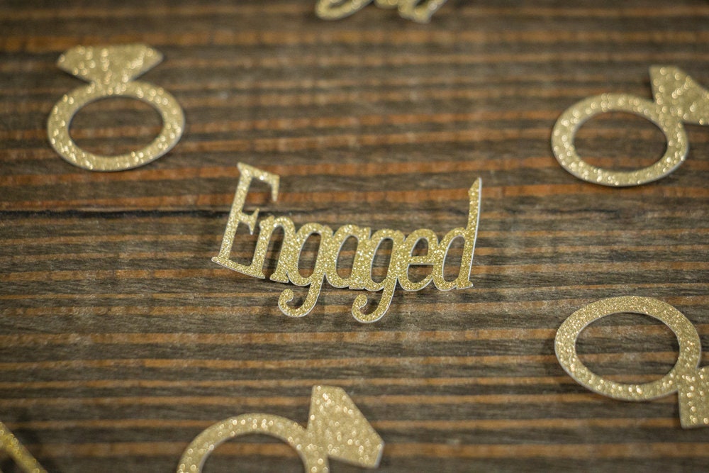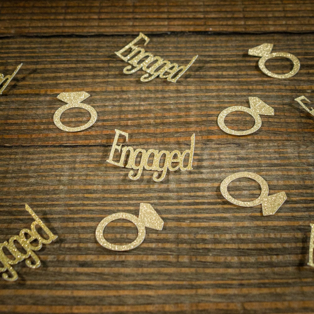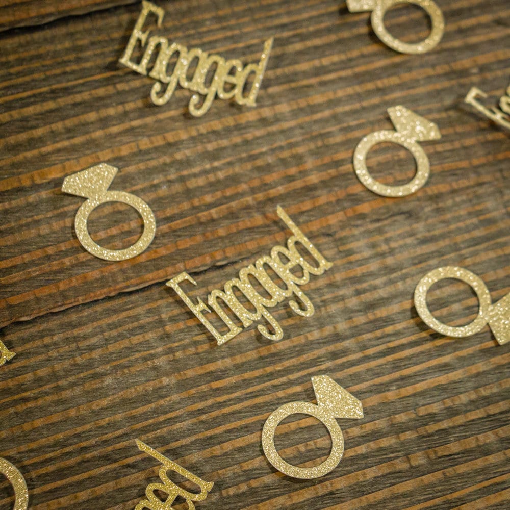 Add a touch of sparkle to your engagement party with this gold glitter engaged confetti!