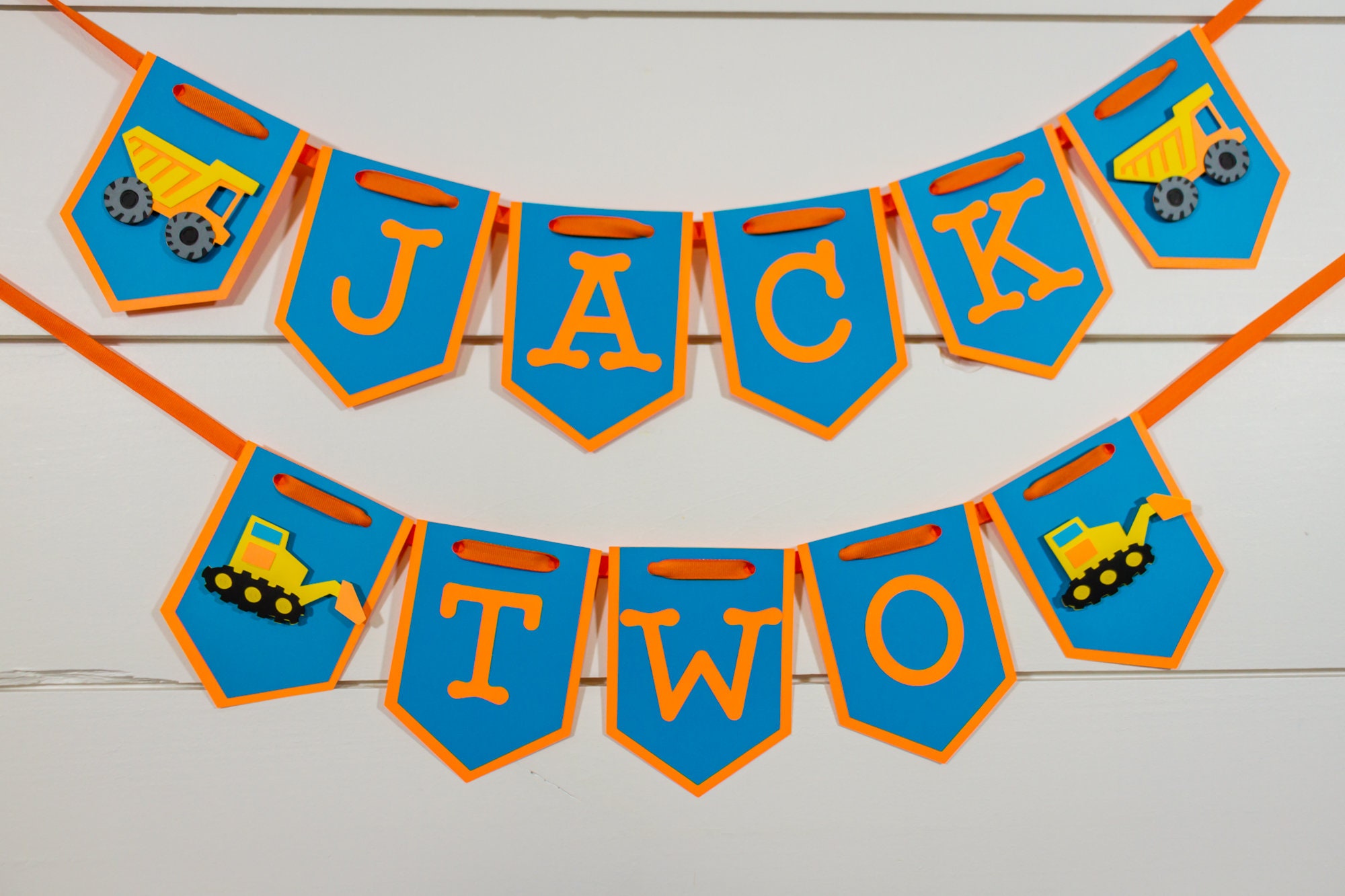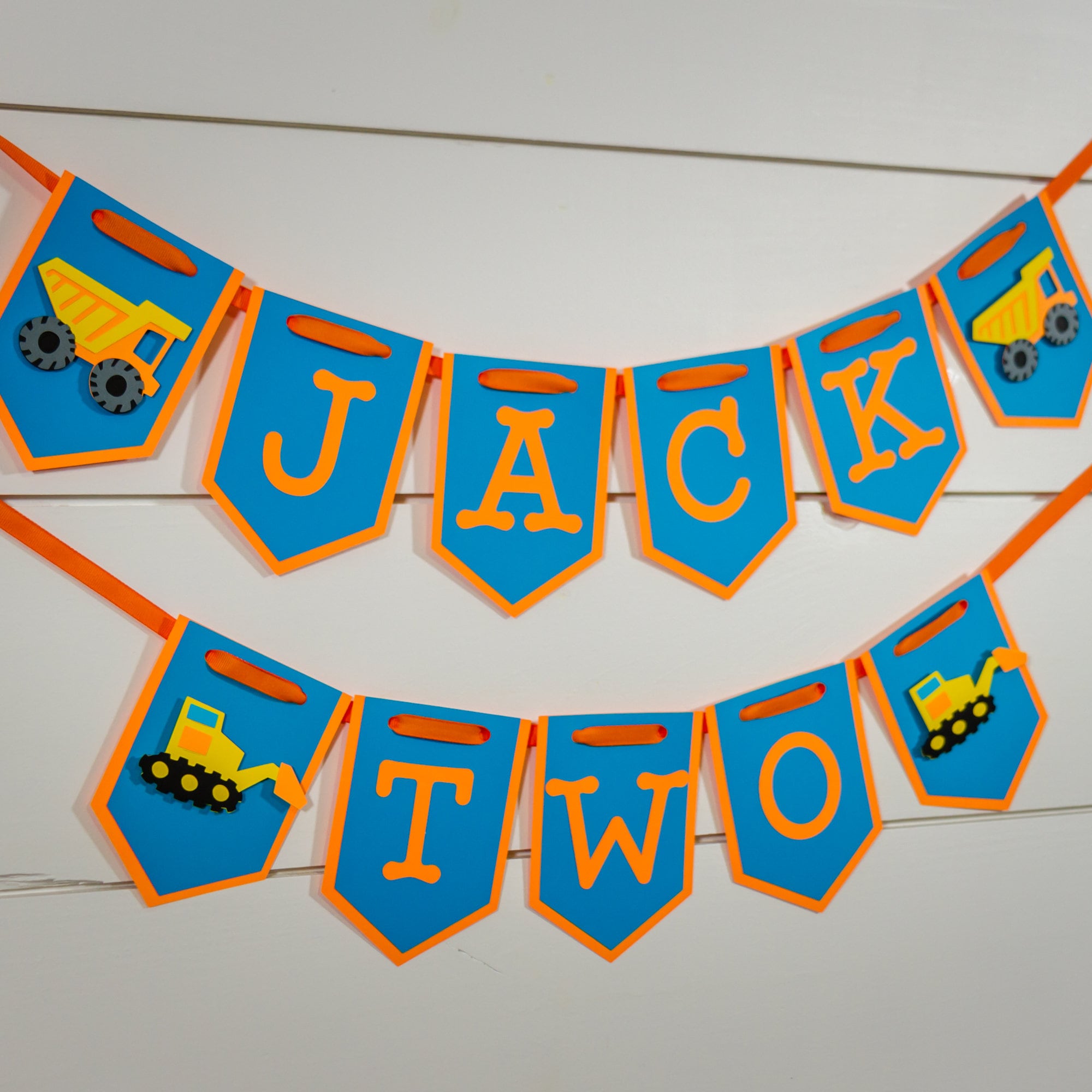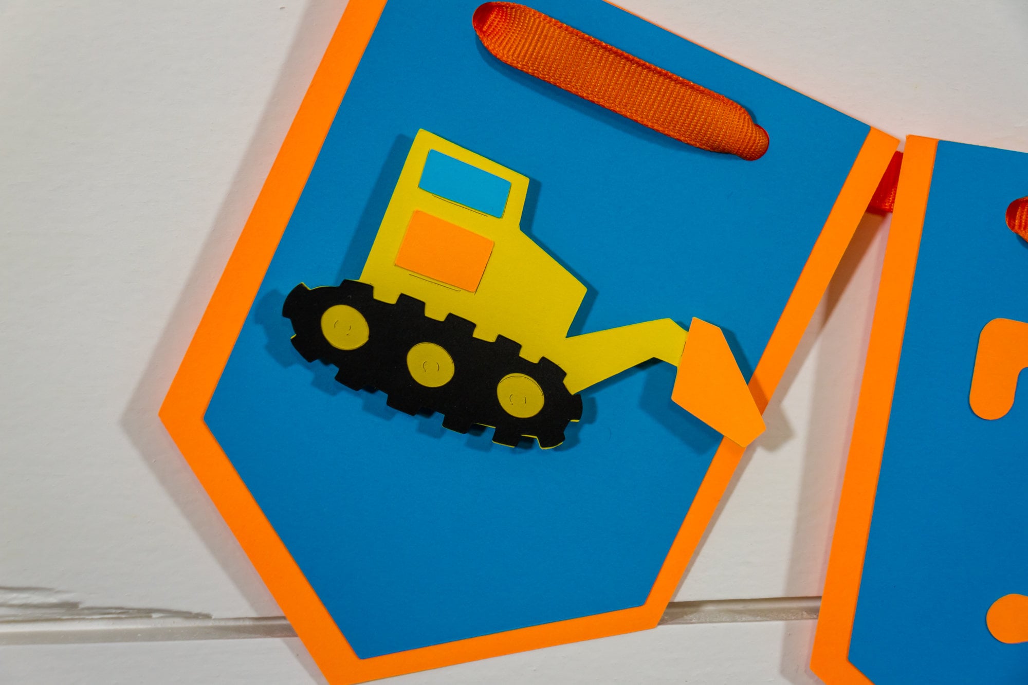 This listing includes both a Construction Name Banner and a Construction Age Banner! The banner pieces are made from premium card stock and each measures approximately 5 inches in height. The pennants are attached with an orange ribbon that is looped at the ends to allow easy hanging. The vehicles are attached with foam dots to create a 3D effect!