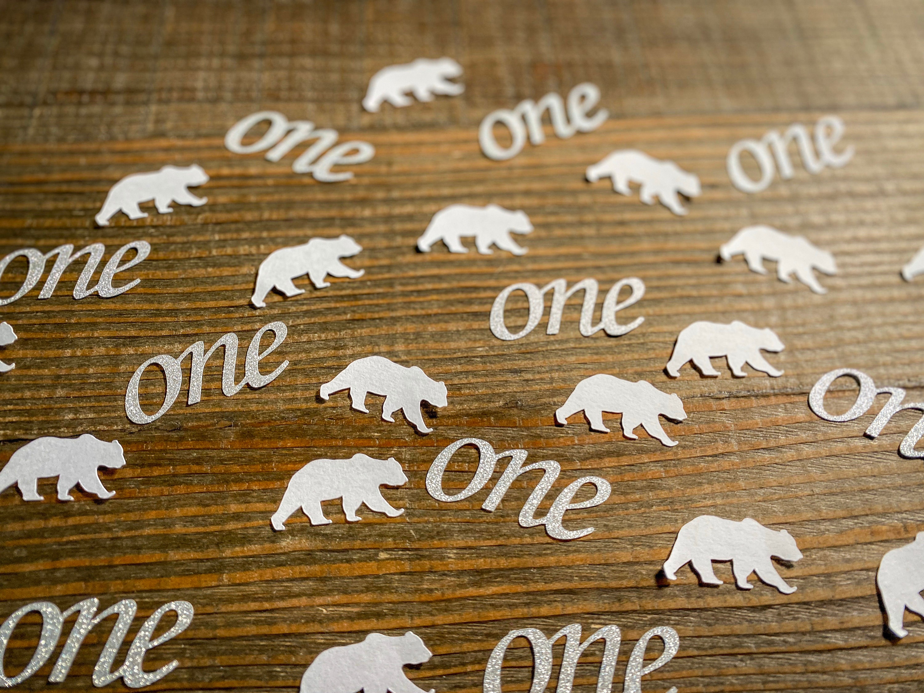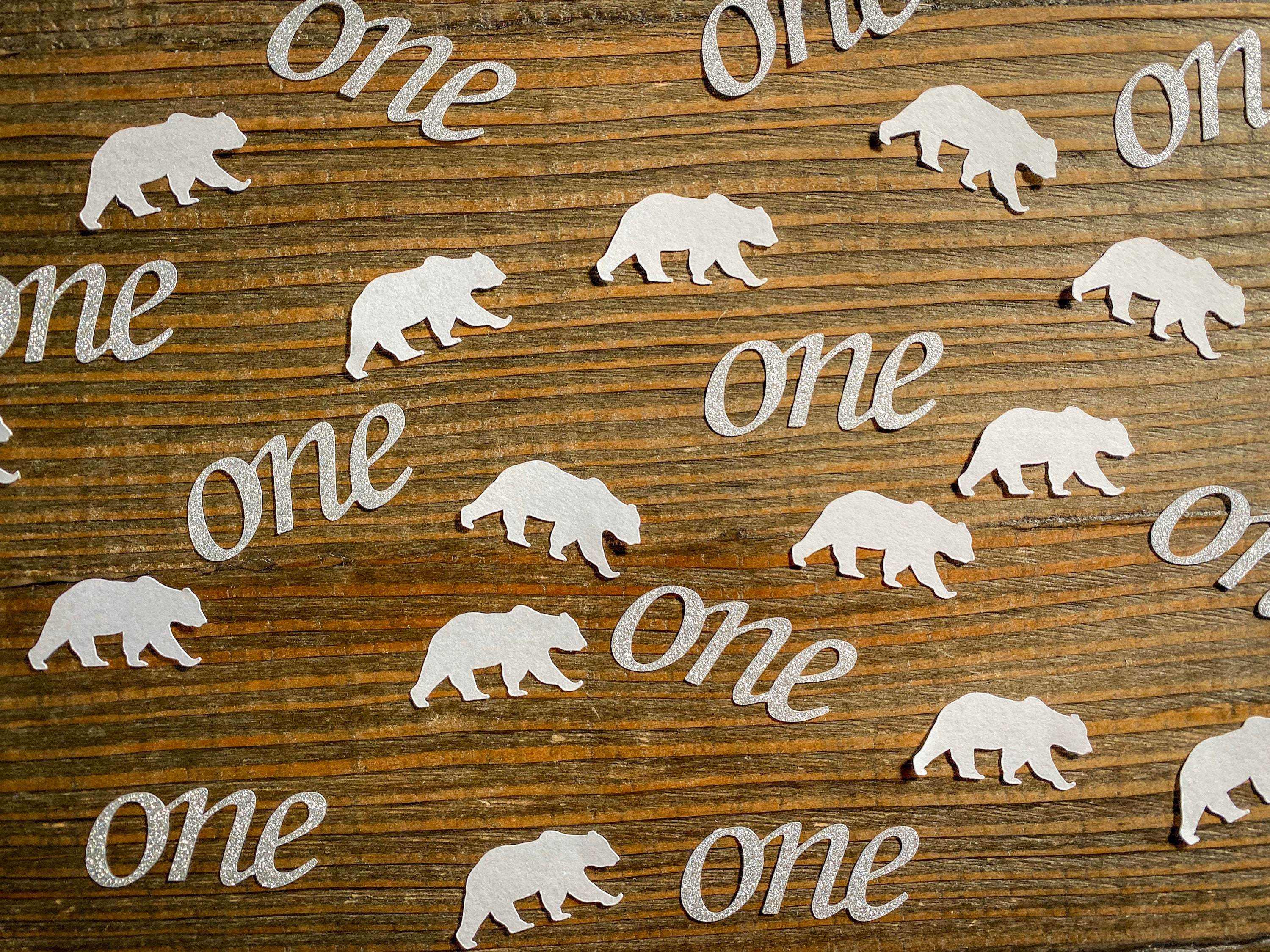This listing is for a set of 100 pieces of confetti! It includes 25 pieces of glitter silver “one” confetti that measures approximately 2 inches and is white on the reverse side. It also includes 75 pieces of white polar bear confetti made from premium cardstock measuring 1.5 inches.