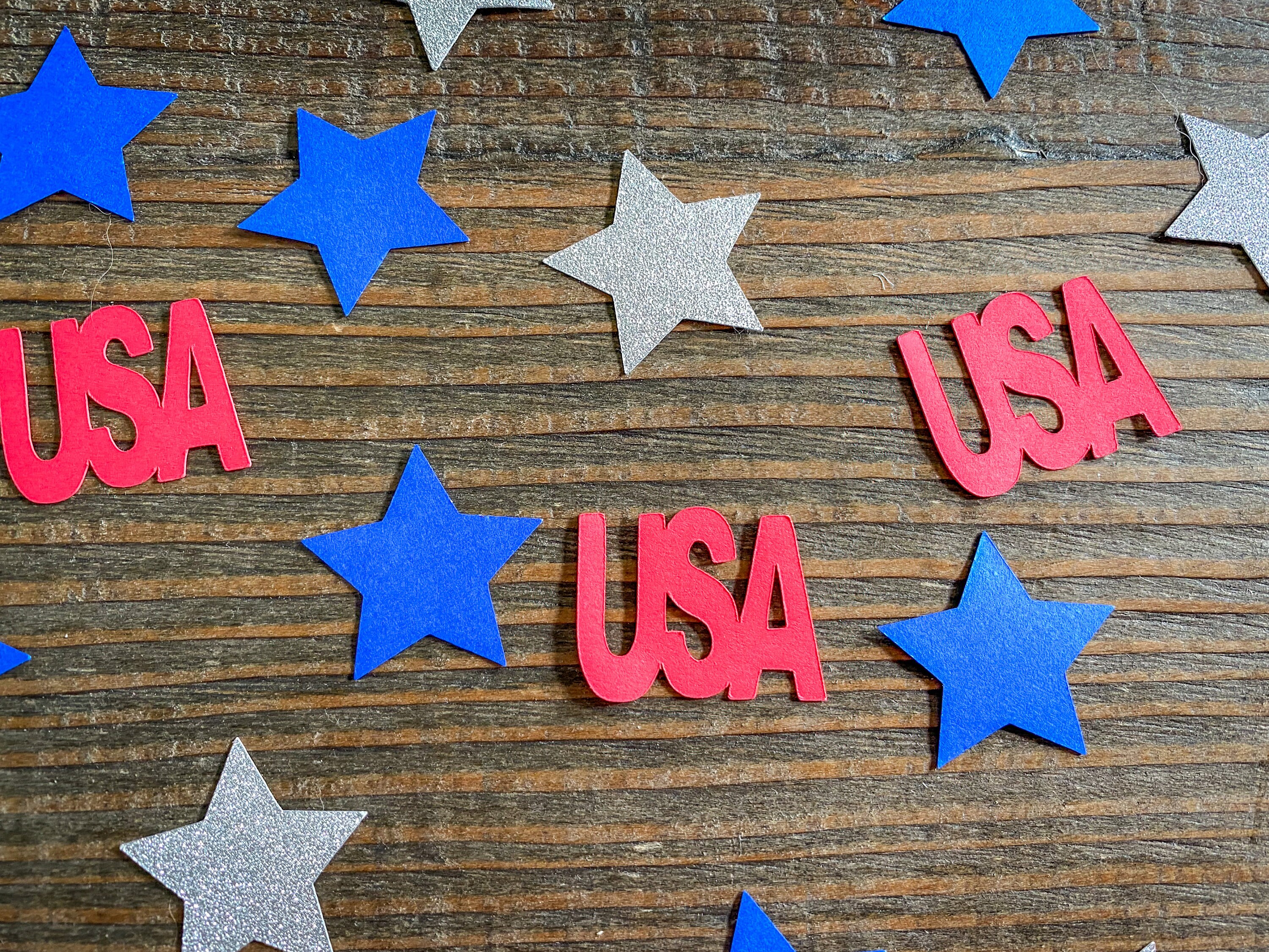 Add a touch of sparkle to your next party with this star confetti! This confetti is perfect for the 4th of July, birthday, gender reveal, military welcome home, or deployment party!
