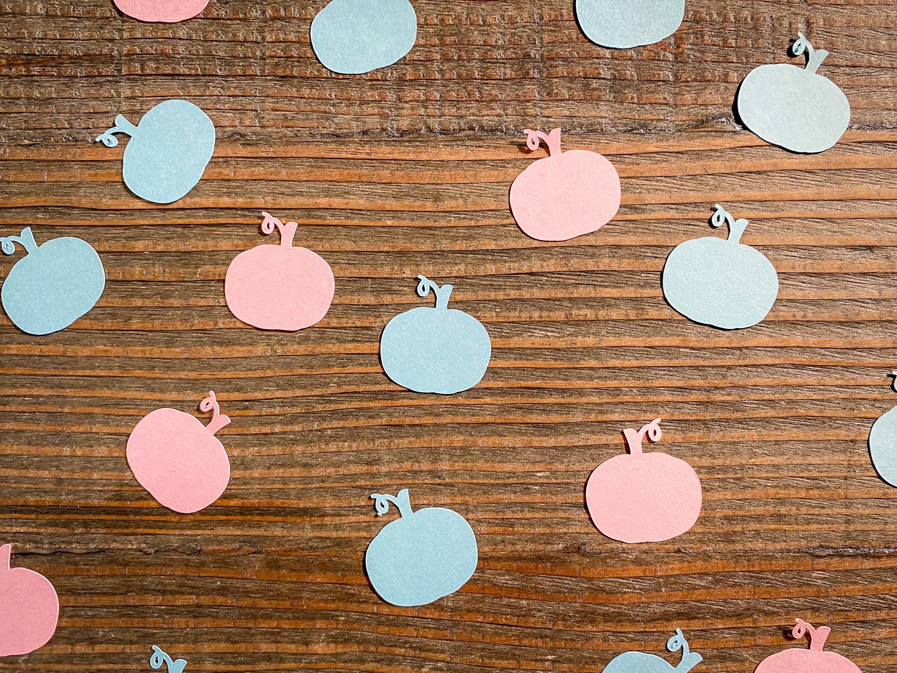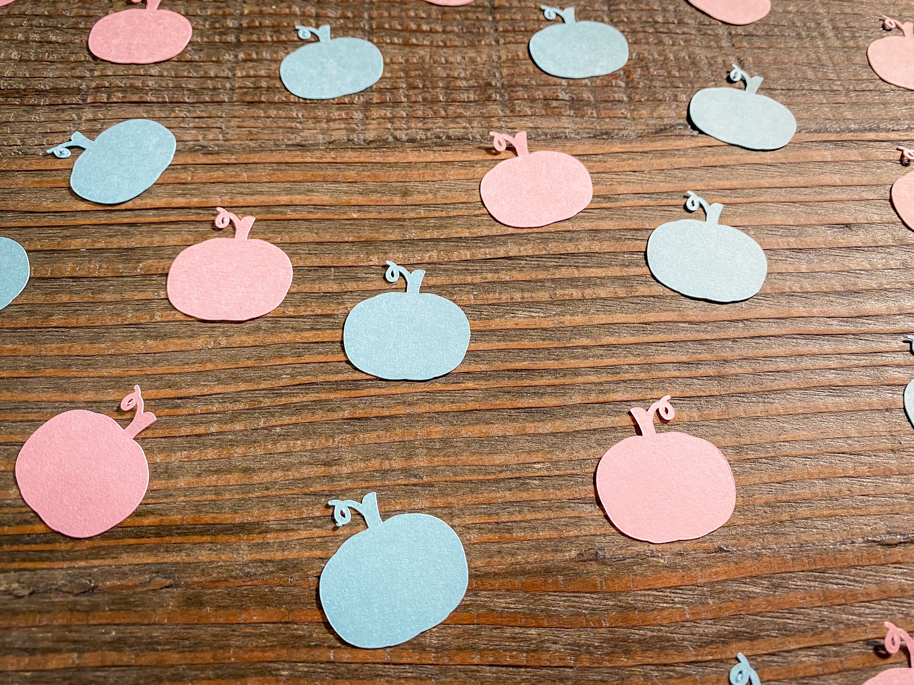 Are you expecting a little pumpkin this year? This confetti is the perfect addition to your gender reveal party or baby shower!